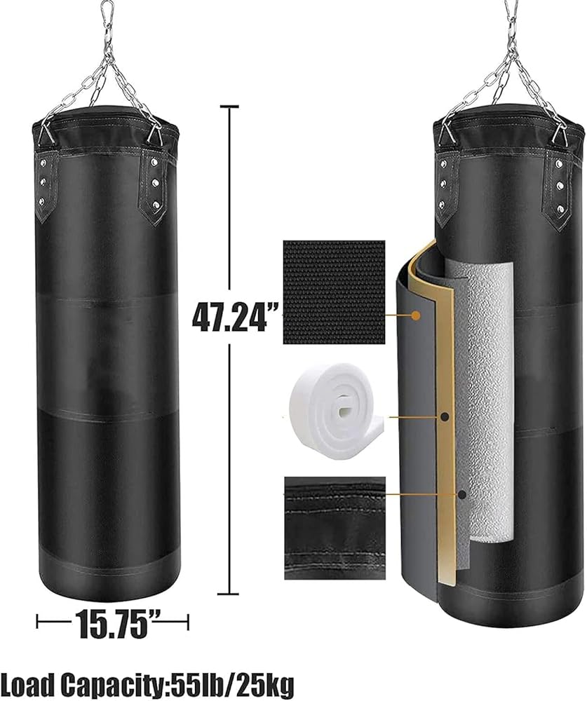 【سهلة الإعداد】تأتي حقيبة اللكم الثقيلة غير مملوءة ومريحة لملءها عن طريق إغلاق السحاب في الجزء العلوي من الحقيبة، وسهلة الحمل والتخزين. يمكنك ملؤها بنشارة الخشب والرمل والقماش القديم والقماش القطني الممزق والإسفنج والمزيد. ولكن يرجى عدم تركيب الرمل فقط، ويفضل ألا يزيد وزن الحشوة عن 80 رطلاً.