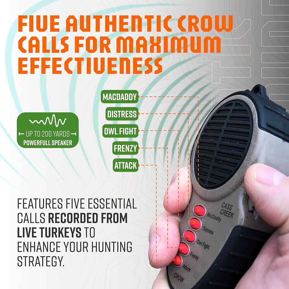 AUTHENTIC CALLS The 5 calls are the basic needs of hunting this species: Bull Reply, Mating Moose, Aggressive Bull, Bull Grunt and Sparring Bulls..TRUSTED NAME Cass Creek has 20 years of manufacturing reliable calls and the first to create digital quality handheld game calls.