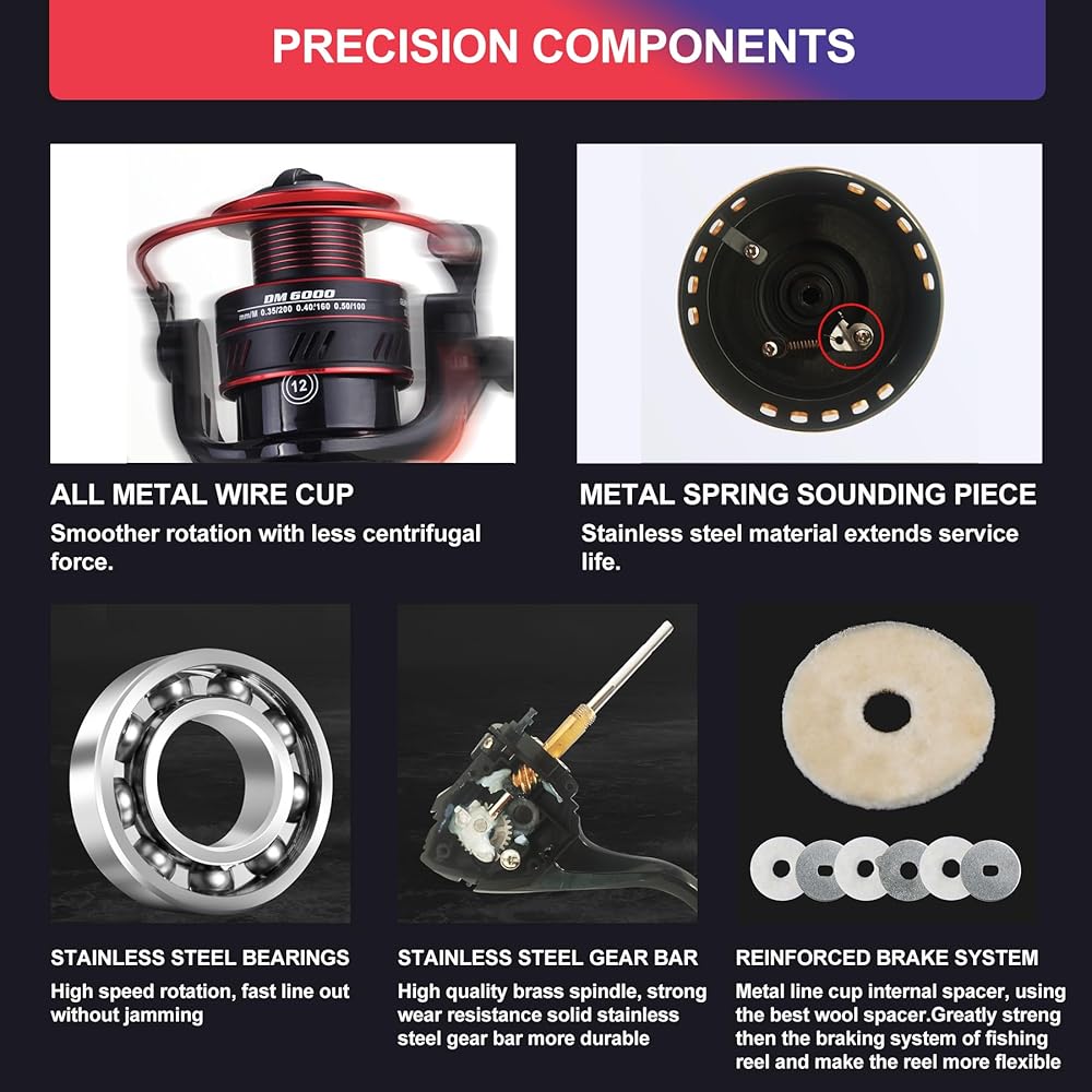 تصميم جديد: تحتوي البكرة الدوارة ايكمي على 12 محامل كروية من الفولاذ المقاوم للصدأ، وتروس من خليط معدني عالي الجودة ونحاس مصنعة آليًا، بوزن يصل إلى 18 باوند. من ألياف الكربون وهيكل متين وأجزاء صلبة أخرى من الستانلس ستيل. مثالية لصيد أسماك المياه العذبة الكبيرة والأسماك على الشاطئ.
