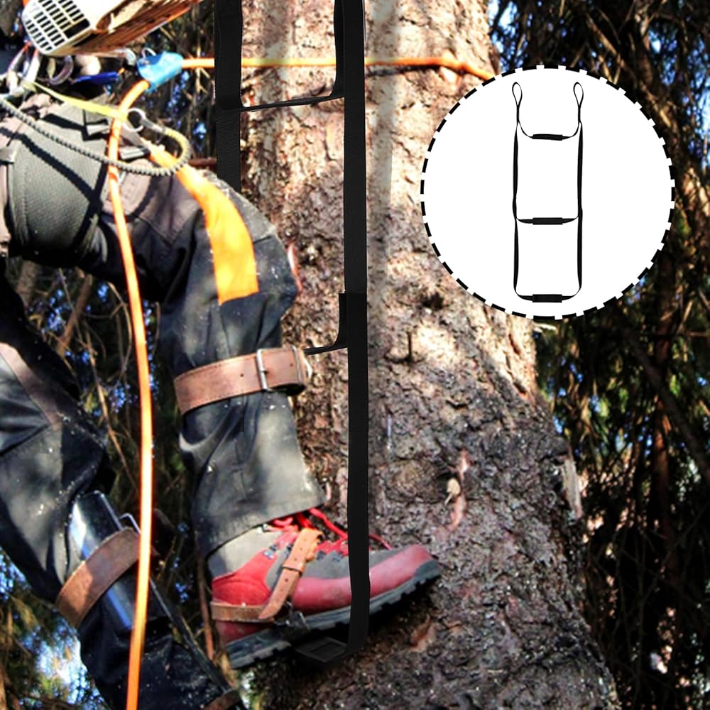 سهل الاستخدام: الجزء العلوي من حامل الشجرة متين جدًا، يمكنك وضع الحلقة العلوية على حامل الشجرة أو تثبيتها على أعمدة التنزه سيرًا على الأقدام. يوصى باستخدامه مع الحزام، مع ترك مساعد التسلق قيد التشغيل لتسهيل استخدام الدواسة. ملحوظة: لا تستخدمه رأسًا على عقب، وإلا فقد ينكسر.