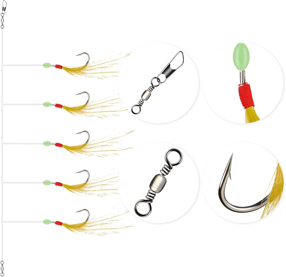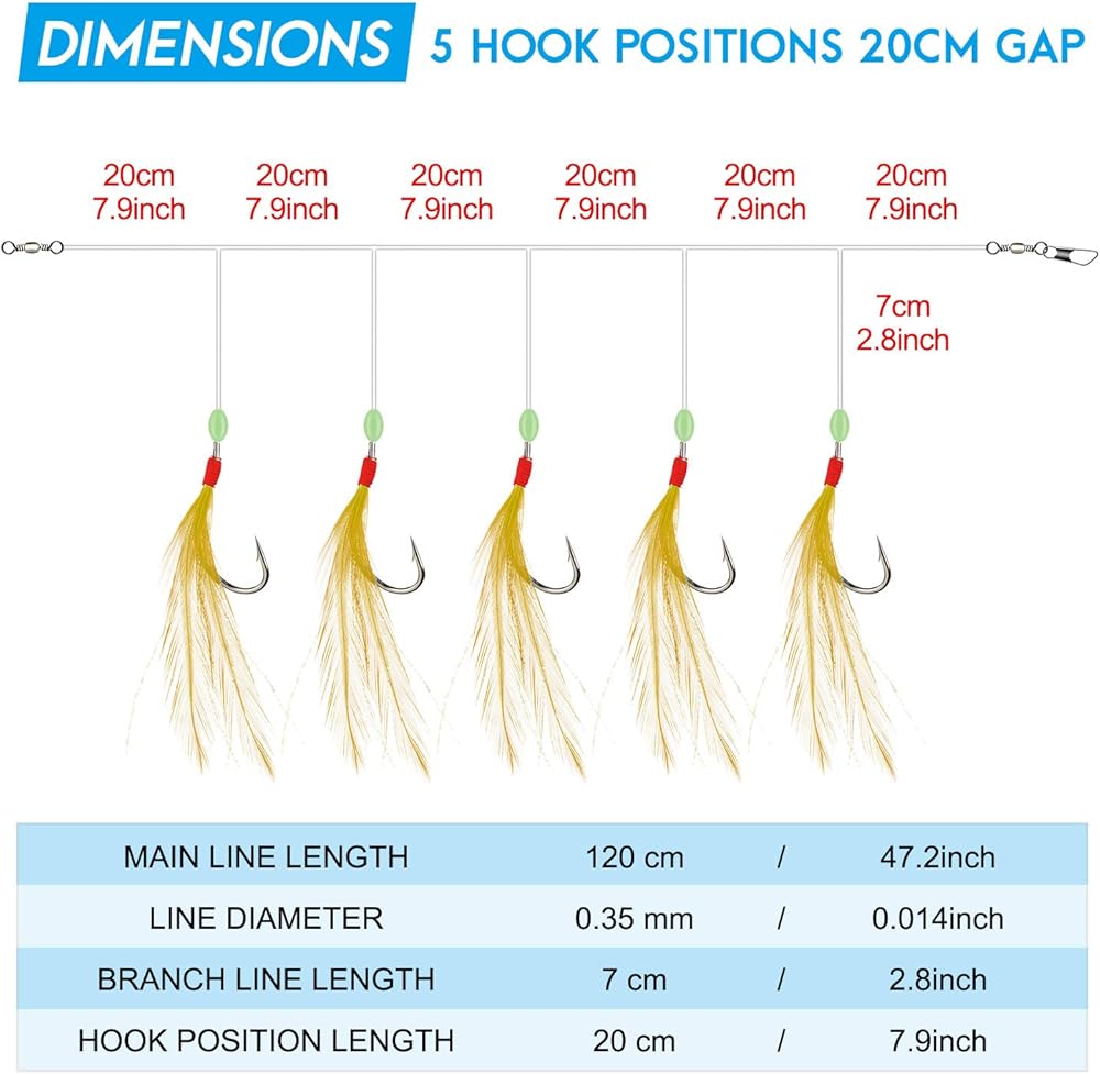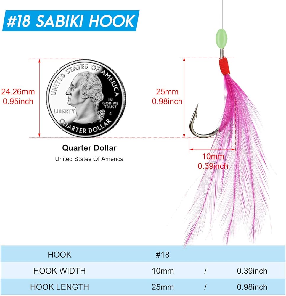 - خطاف مقاس #18، مادة قوية، مقاومة للعض. مساعد جيد لالتقاط الماكريل والبحر وسمك السلمون المرقط والجثم والكربوهيدرات والجهير