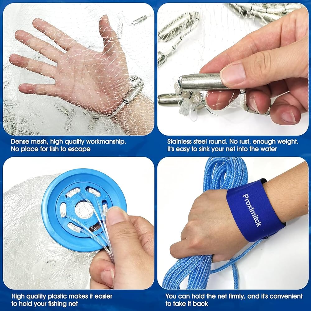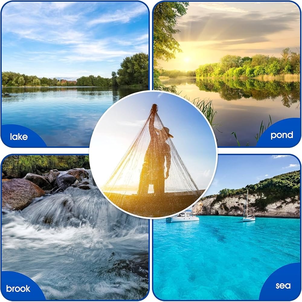 الأبعاد: نصف قطر 6 أقدام، شبكة 3/8 بوصة تناسب معظم أنواع الطعم. اجعل التقاط الطعم الحي سهلاً وممتعًا، ويوفر وفورات كبيرة في تكلفة الطعم.