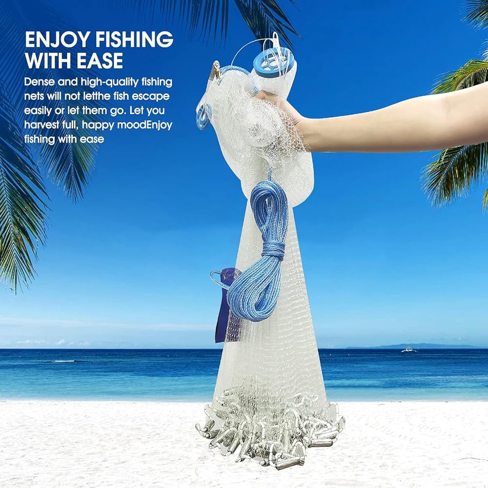 شبكات الصيد المصبوبة في المياه المالحة الأمريكية، شبكة صب فخ الطعم الممتازة 4 أقدام و6 أقدام و8 أقدام و10 أقدام و12 أقدام بحجم نصف قطر مع أوزان مستديرة من الفولاذ المقاوم للصدأ، مقاس 3/8 بوصة