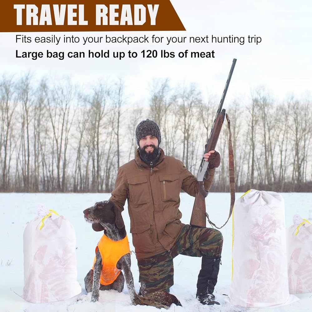 أكياس ألعاب إلك قابلة لإعادة الاستخدام لصيد اللحوم، 5 أكياس ألعاب اللحوم، أكياس ربع ملفوفة شديدة التحمل، أكياس ألعاب كبيرة للأيائل والكاريبو والغزلان، 20 * 35 بوصة × 5