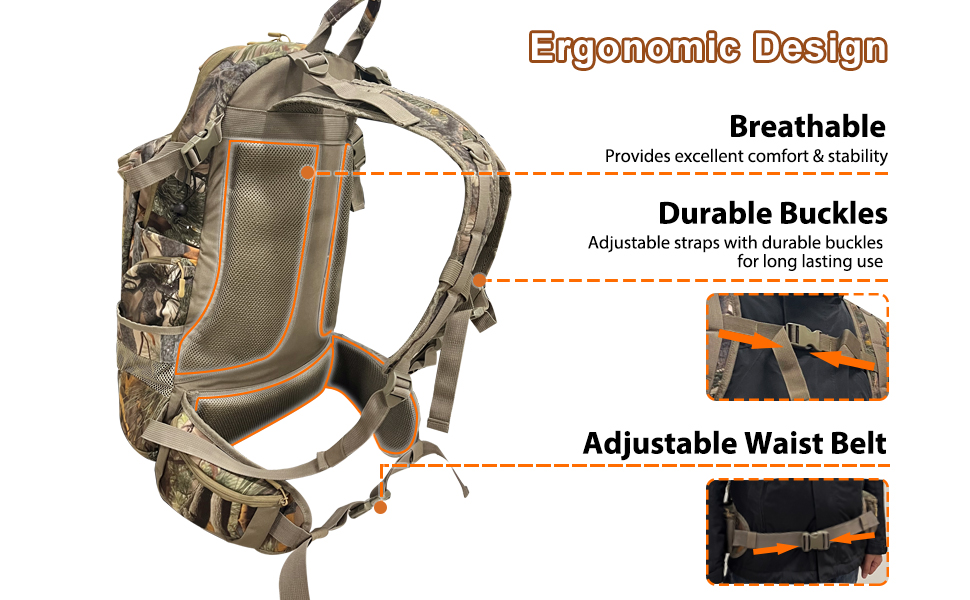 متعددة الاستخدامات: تتميز حقيبة ظهر الصيد بحامل اثنين في واحد لقوسك أو بندقيتك. يمكن استخدام حقيبتنا مع بندقيتك أو القوس أو المسدس.