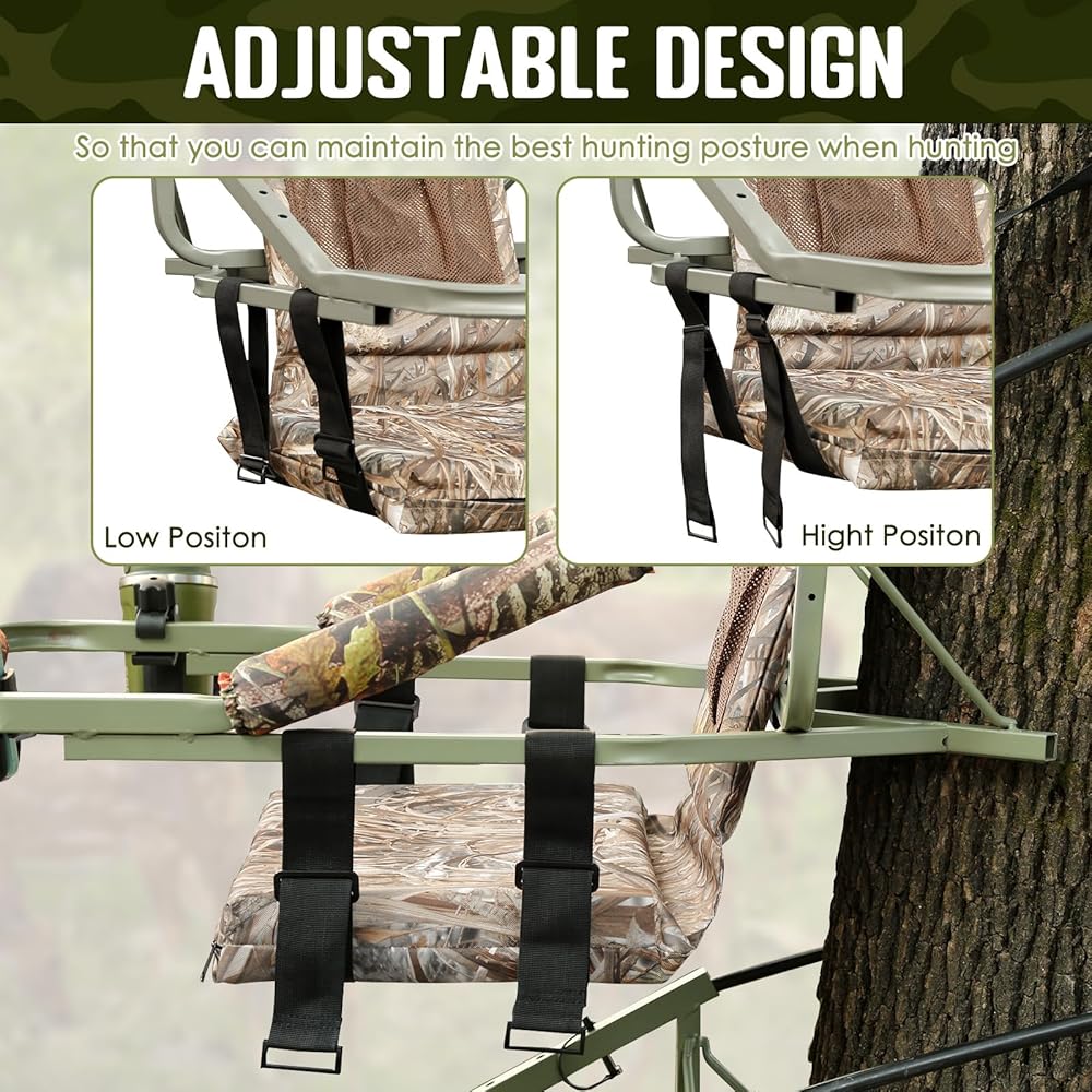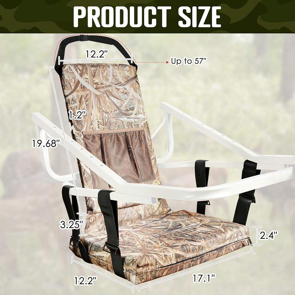 • 【Easy To Install】Adjustable Webbing With Clips And Metal Lock. Fix The Hunting Seats On The Tree Stand, The Metal Lock Design Is More Secure, And You Can Adjust The Suitable Size According To Comfort, So That You Can Sit Higher Or Lower When Hunting And Maintain The Best Hunting Posture.