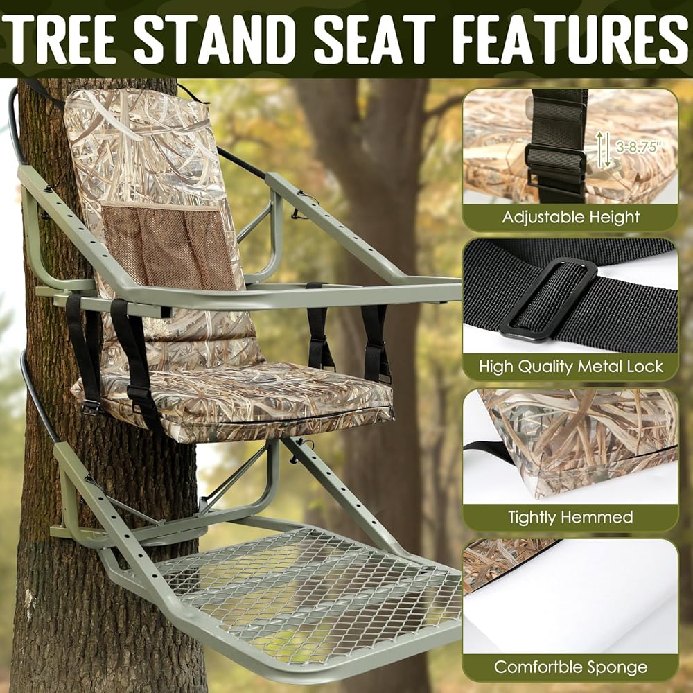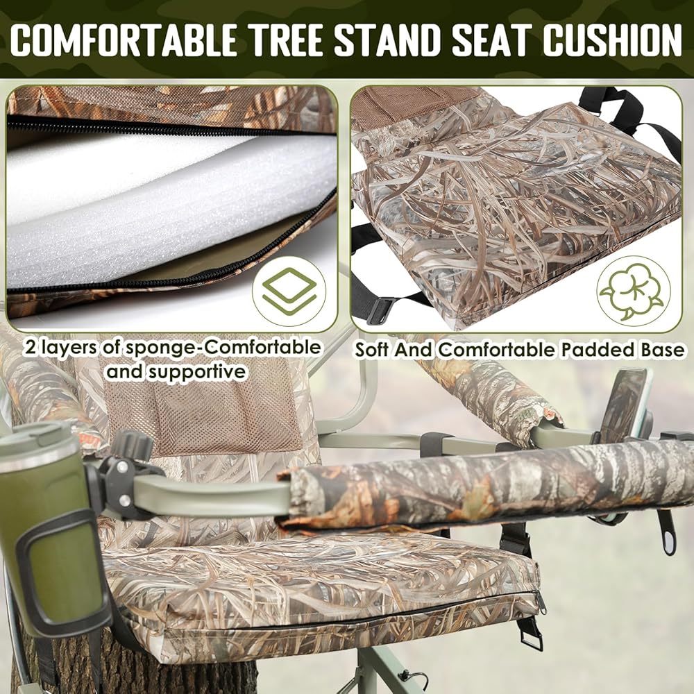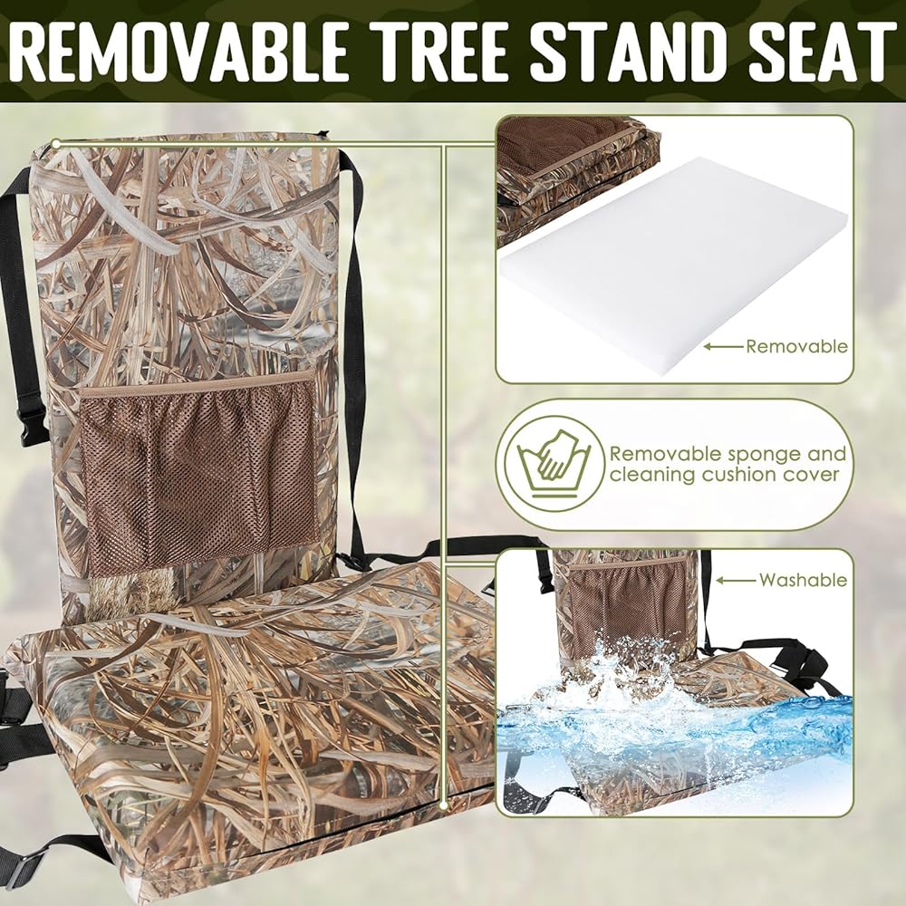 Aolamegs ملحقات مقعد شجرة الصيد - وسادة مقعد حامل شجرة صيد مقاومة للماء، مقعد بديل مموه للشجرة، مقعد حامل سلم صيد سميك قابل للإزالة للرجال