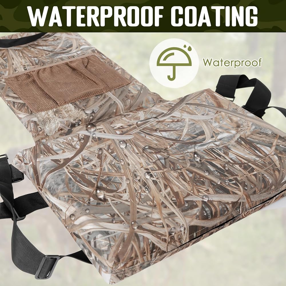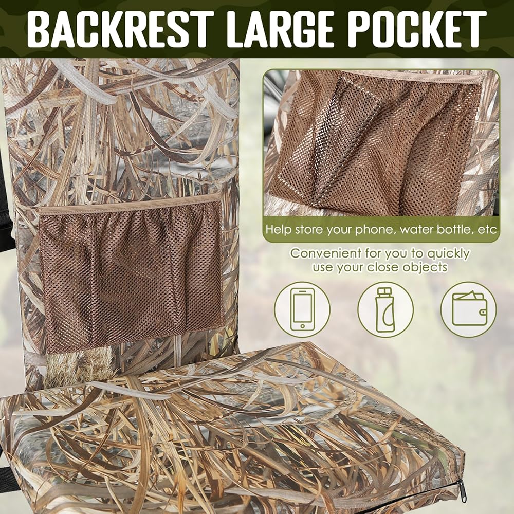 • 【Waterproof Fabric】 Waterproof Fabric And Zipper Edging Ensure Waterproofing And Can Prevent External Water From Wetting The Seat Cushion. Even If It Rains Or Accidentally Knocks Over The Water Glass, You Can Easily Wipe Away The Water Stains On The Surface.Without Getting Your Clothes Wet.The Camouflage Color Blends Well With The Surrounding Trees And Will Not Be Easily Spotted By Prey.
