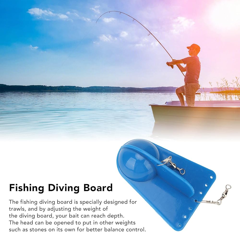 Deeper: The fishing diving board is specially designed for trawls, and by adjusting the weight of the diving board, your bait can reach depth. The head can be opened to put in other weights such as stones on its own for better balance control.
