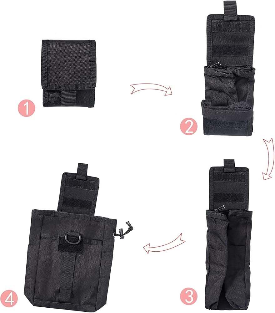كيس التفريغ مصنوع من نايلون 1000D عالي الكثافة. متين ومقاوم للماء. الحجم الكامل: 6 بوصة طول × 3 بوصة عرض × 9 بوصة عمق أثناء الطي: 4.7 بوصة طول × 3.8 بوصة عرض × 1.8 بوصة عمق. مساحة كبيرة وسهلة الحمل.