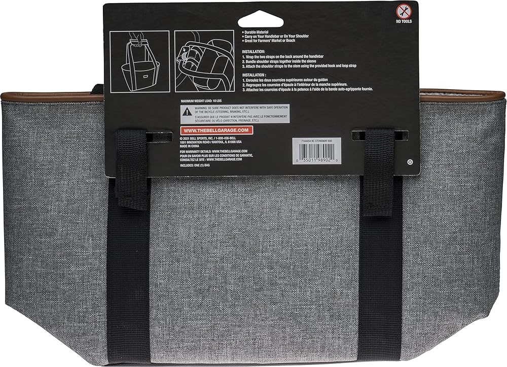 The Bell Stowaway 600 is a convenient handlebar-mounted bag that can be removed and used as a hand-carried tote. The large main compartment is spacious enough for all your farmer's market finds. The Stowaway 600 easily attaches to any handlebar using two hook and loop straps. A third strap on the handles attached to the stem to stabilize loads up to ten pounds. Bell bags are made tough with durable materials to ensure a long life on your bike.