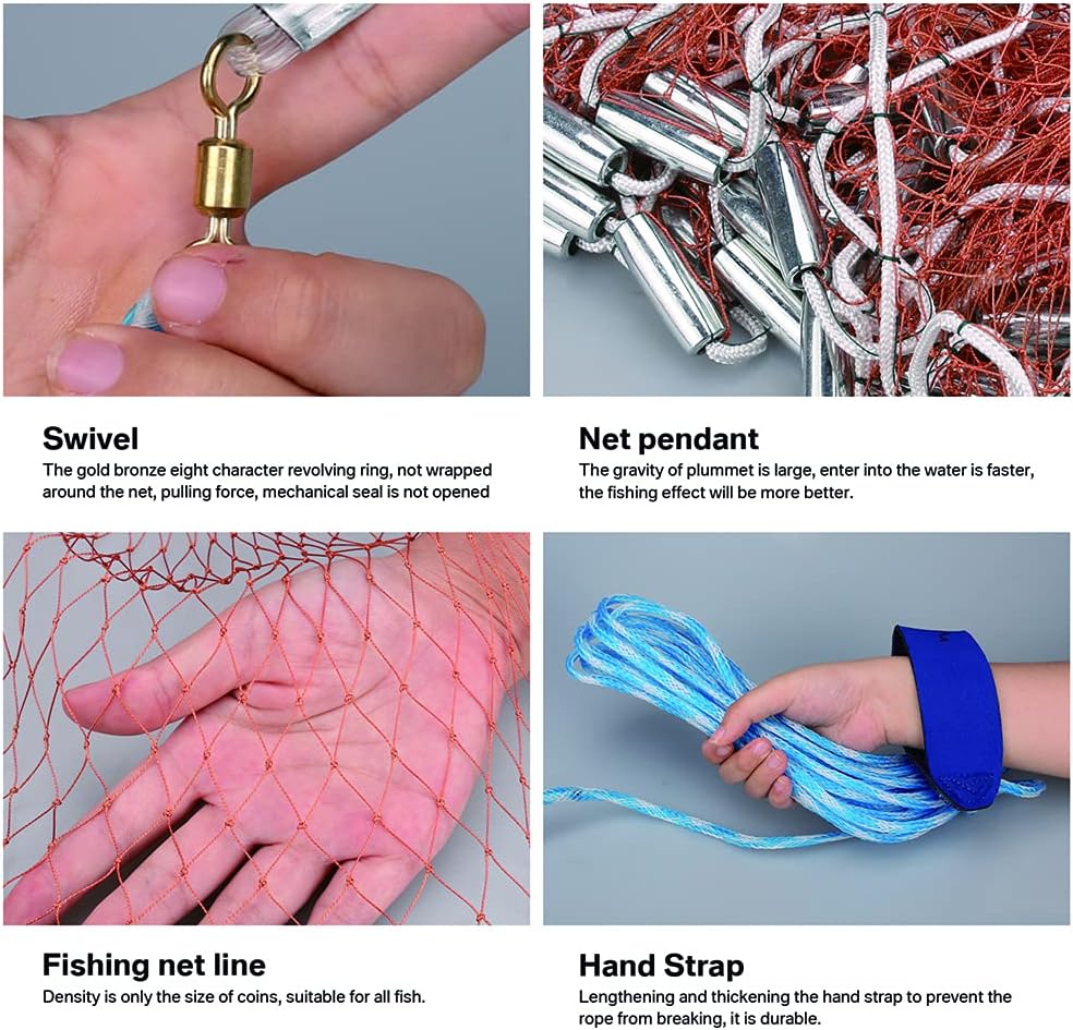❤المقاس: متوفر بمقاس 4 أقدام/6 أقدام/8 أقدام، شبكة 0.8 بوصة، توفر حوضًا سريعًا وختمًا سفليًا محكمًا لمنع هروب الطعم.