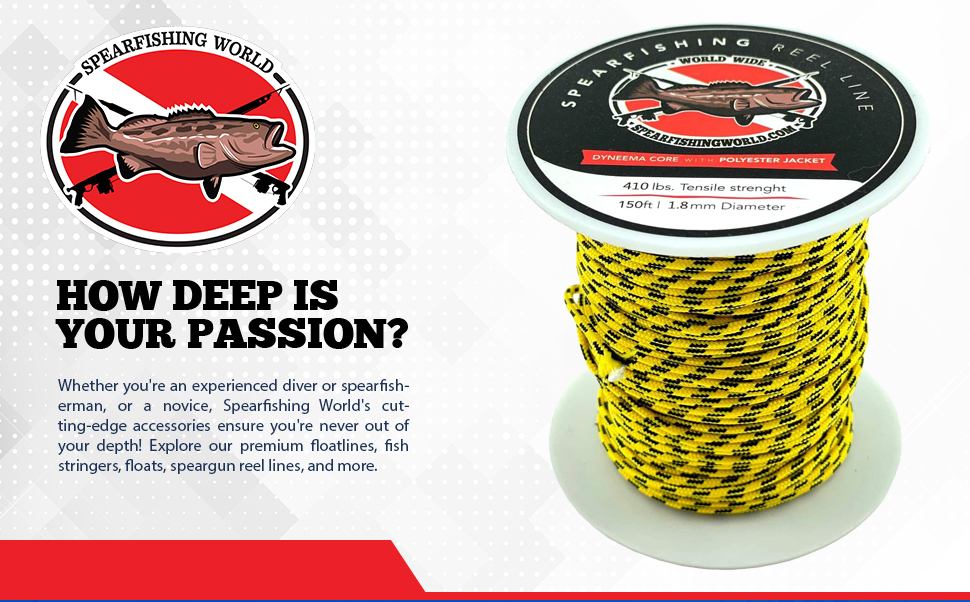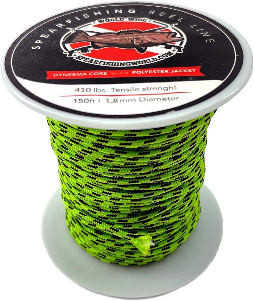 - يبلغ سمك خط بكرة Spearfishing World Dyneema 1.8 مم مع قوة شد تصل إلى 410 رطل.
