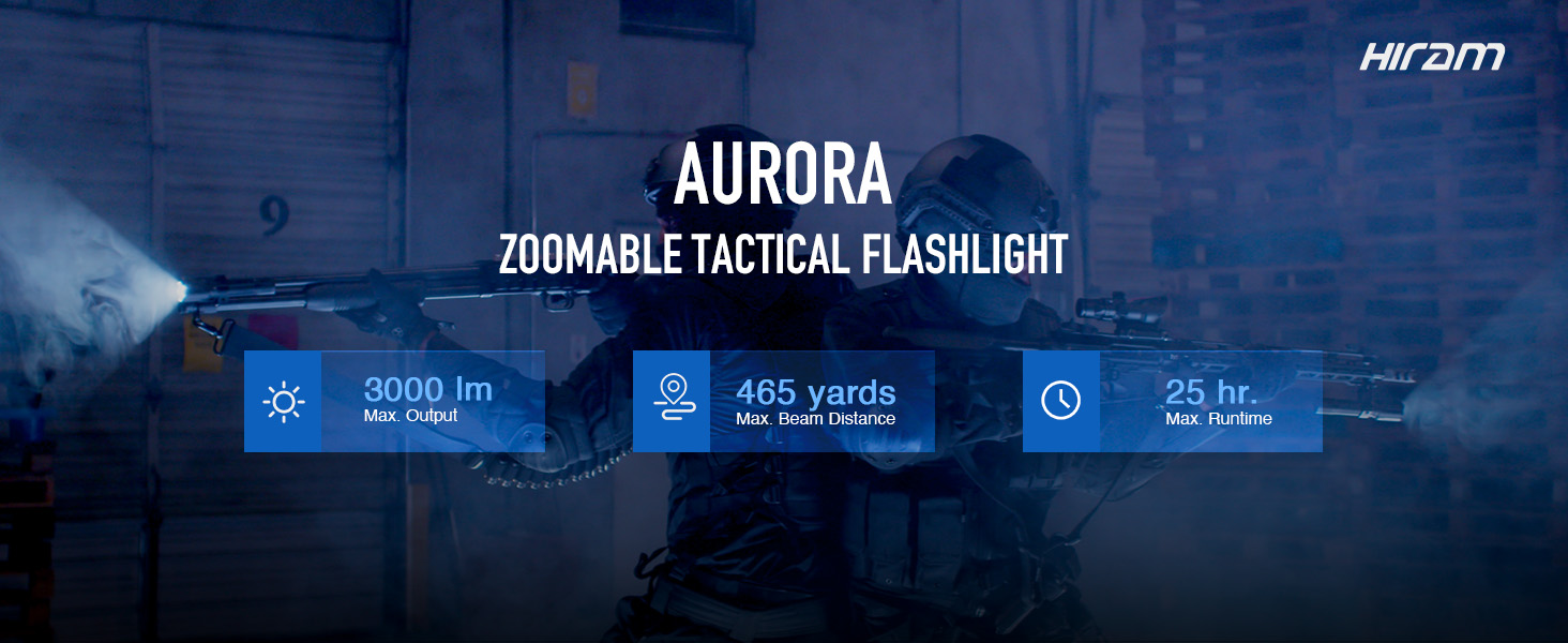 مصباح يدوي هيرام أورورا 3000 لومن تكتيكي مع 465 ياردة. الوصول، ضوء بندقية زوومابلي مع 5 مستويات ووضع ستروب، IP68 WML مع حلقات تثبيت الدراجة والبندقية، ضوء بندقية LED عالي التحمل للبيكاتيني