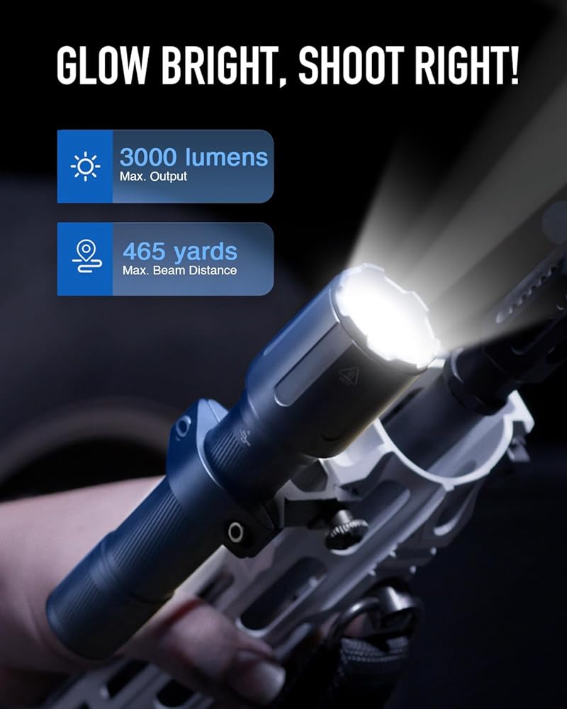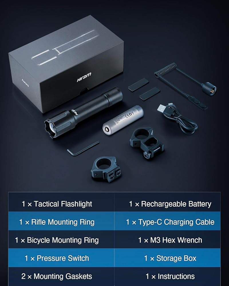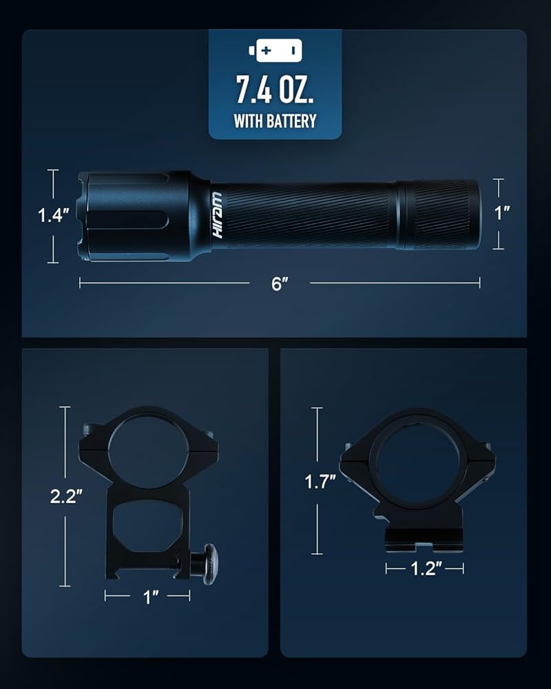 رؤية فائقة السطوع: يوفر ضوء البندقية التكتيكي من Hiram 3000 لومن و45000 قرص مضغوط للحصول على سطوع استثنائي ودقة محسنة في بيئات التصوير الخافتة وجلسات المدى والمواقف الحرجة.