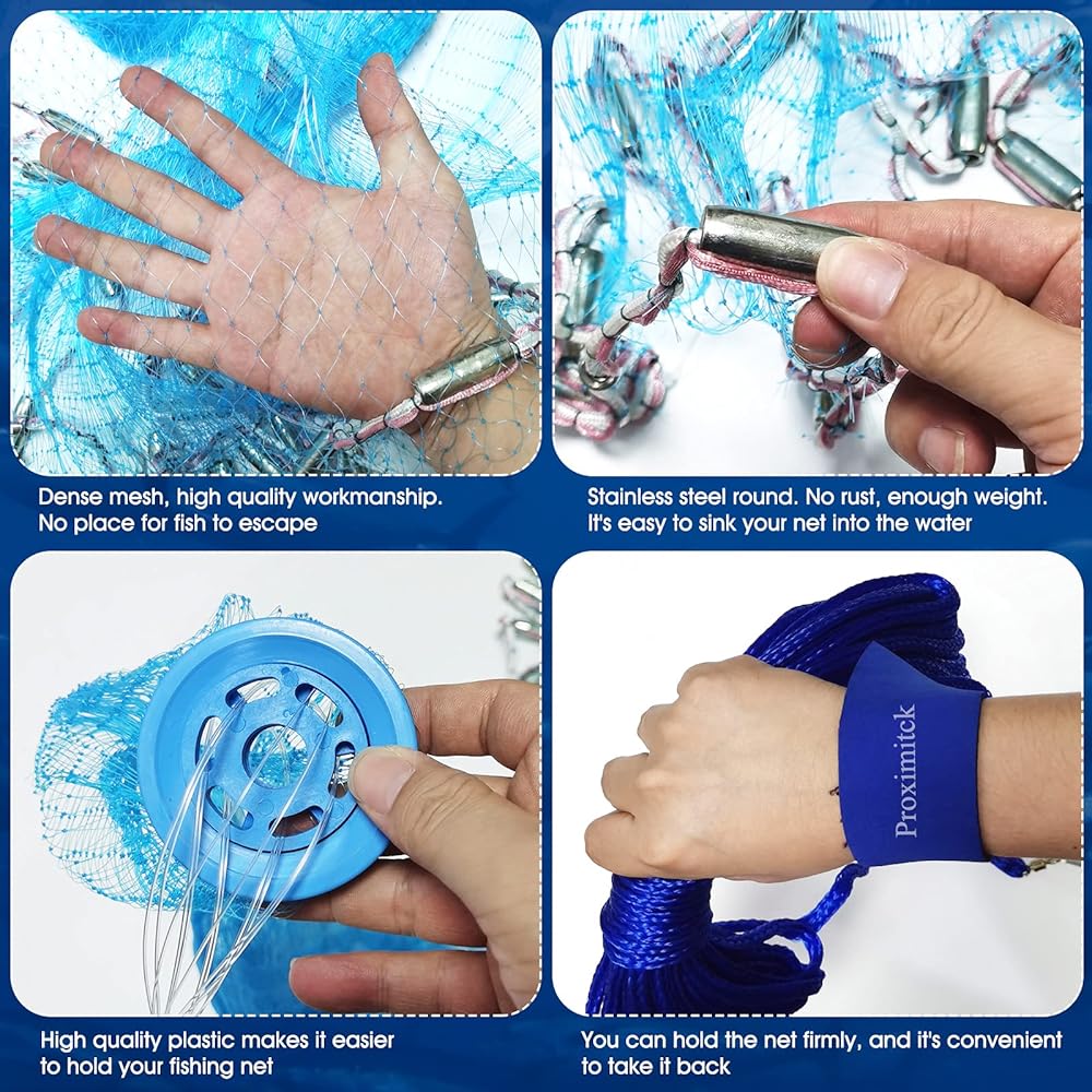 🐟الأبعاد: شبكة مصبوبة زرقاء نصف قطرها 8 أقدام، شبكة أحادية البوليمر مصنوعة يدويًا، شبكة 1/2 بوصة تناسب معظم أنواع الطعم.
