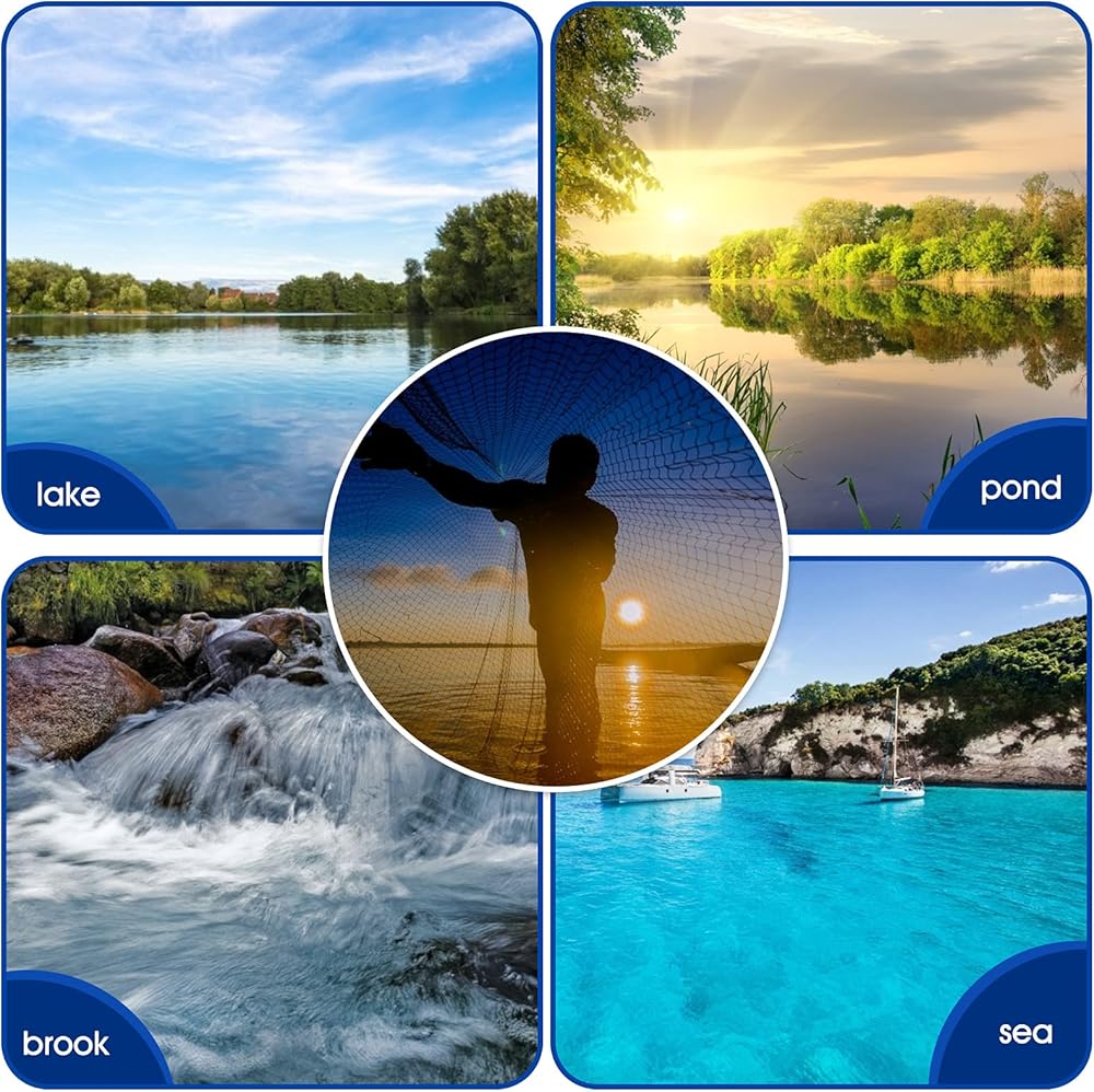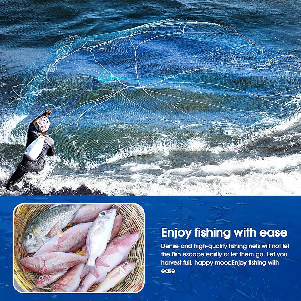 🐟 شبكة مصبوبة ممتازة تلتقط الكثير من الفرائس: تتميز شبكات الصيد بختم سفلي محكم لمنع هروب الطعم. براعة عالية الجودة تجعل هذا المنتج ضروريًا لأي صياد.