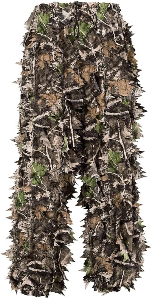سراويل صيد مموهة سهلة الارتداء: توفر سراويل الصيد المموهة المضمنة في هذه البدلة المموهة ذات الأوراق الورقية ملاءمة مريحة بفضل الكاحلين المرنين وحزام الخصر المرن مع رباط متين.