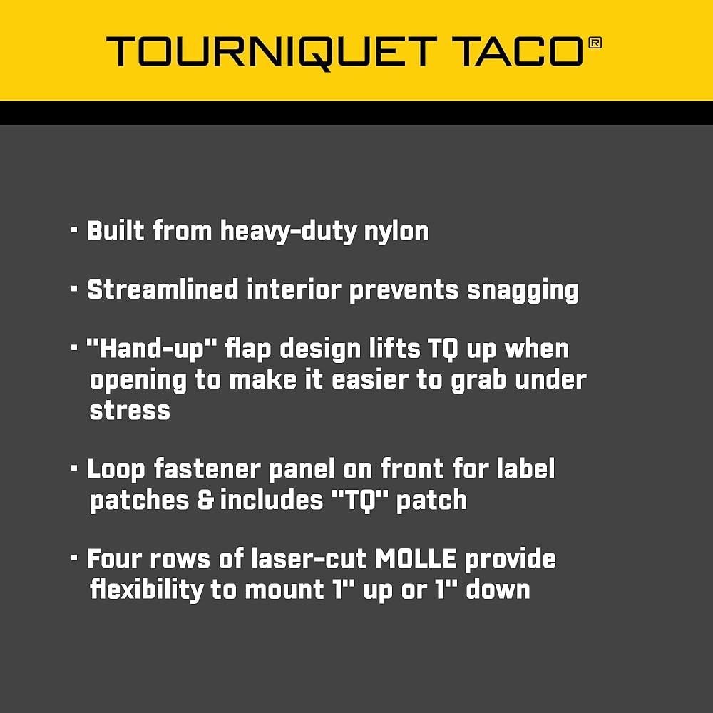 تم تصميم Tourniquet TACO للاحتفاظ بمعظم عاصبة الرافعة الموجودة في السوق. تم تصميم هذه الحقيبة للتوسع والتعاقد مثل بقية عائلة TACO لتناسب احتياجاتك وتفضيلاتك.