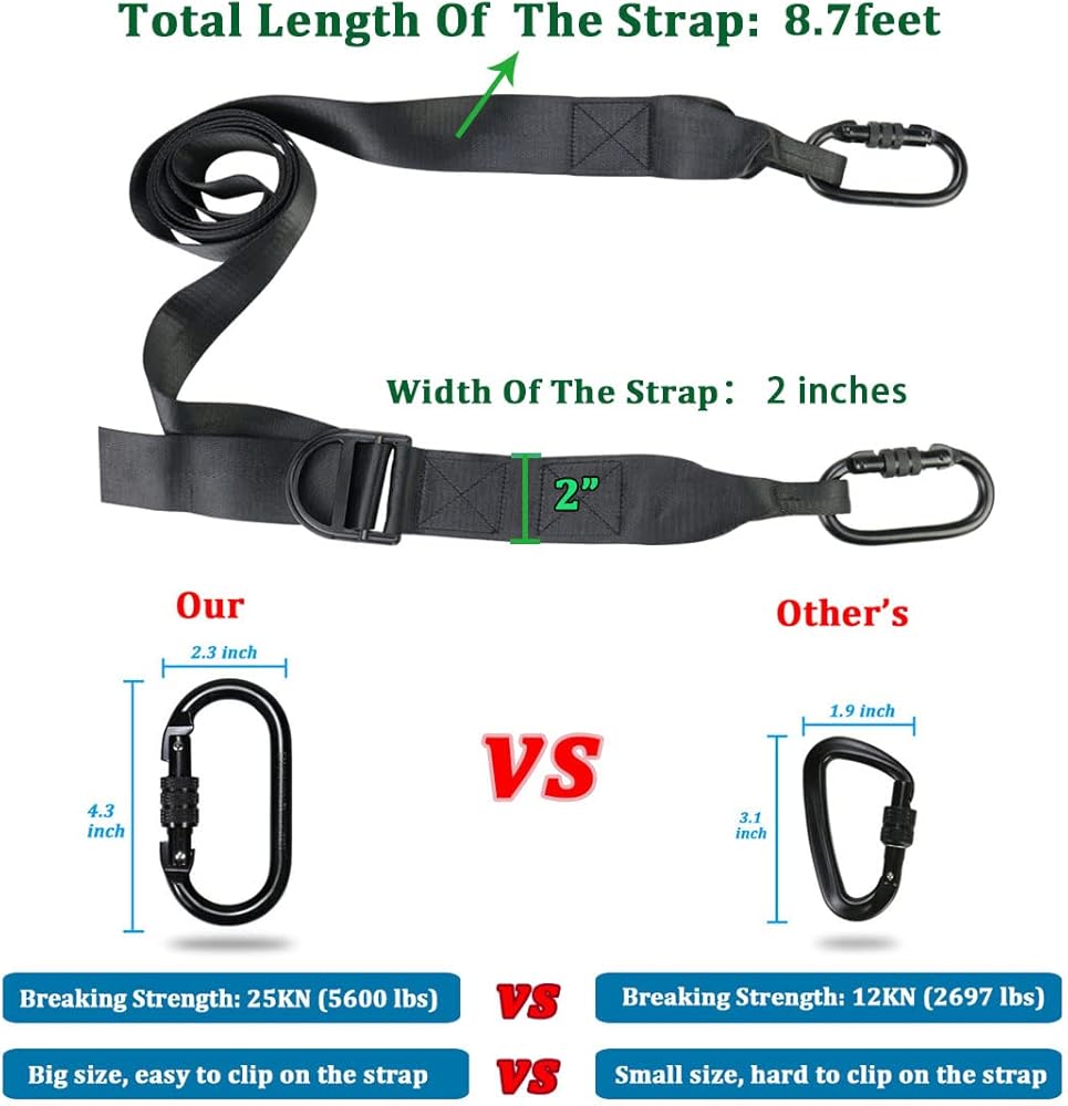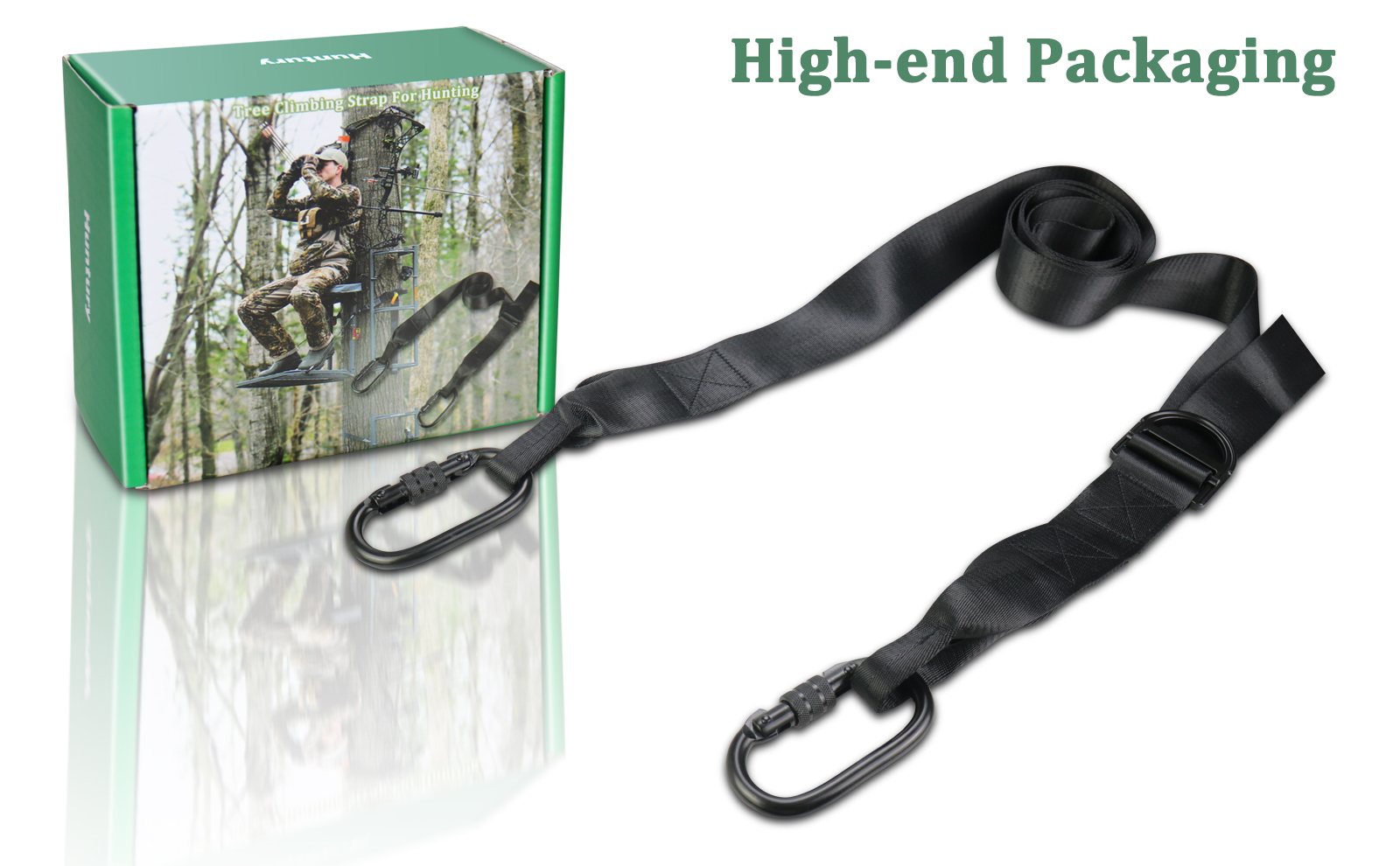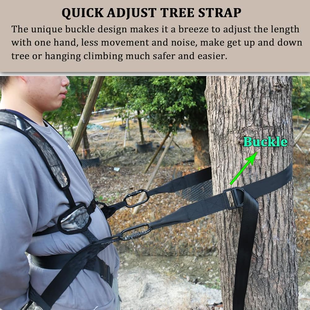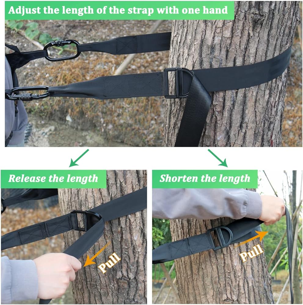¡¾A MUST HAEV FOR CLIMBING TREE STAND¡¿Use it to go around the tree and connects to your safety harness. Once it's set in the tree it provides a safe, quick, convenient, effective, and reliable way to get up and down from your stand without risking a fall even in the dark. Once you use it to climb, you will never go back climbing tree without having this tree strap.