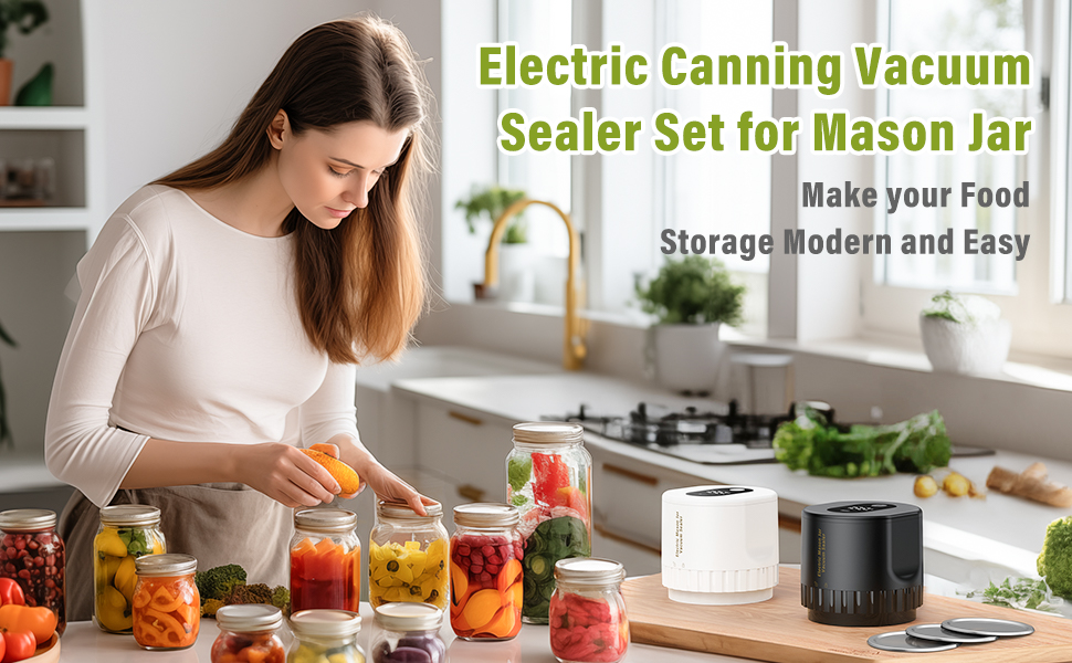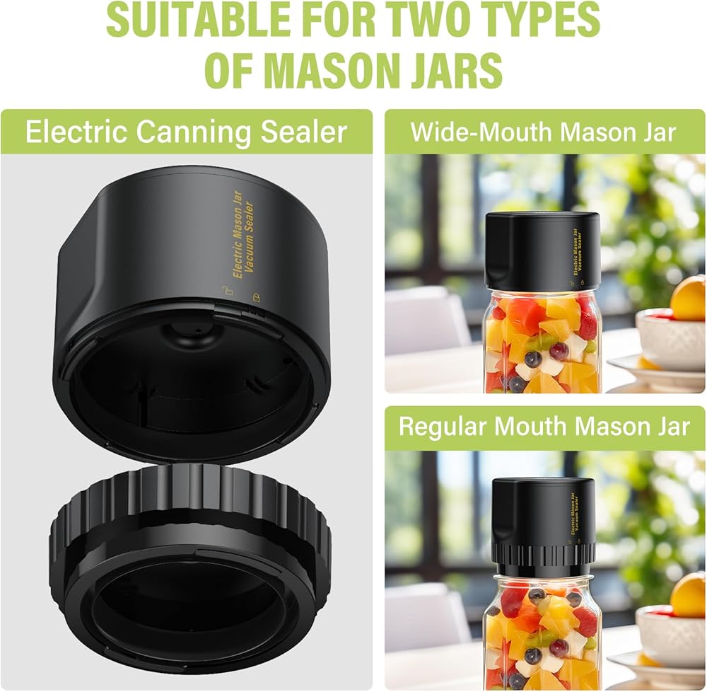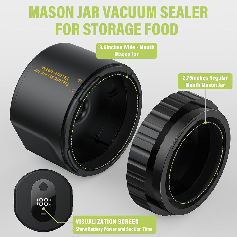 • 【سهلة الاستخدام】مناسبة لبرطمان بحجم فمين، وبرطمان ماسون عادي الفم مقاس 2.75 سم، وبرطمان ماسون واسع الفم مقاس 8.89 سم. نحن فقط نضع الأغطية على فم الزجاجة ونضغط على الجرة داخل مانع التسرب، ثم نضغط على الزر وننتظر