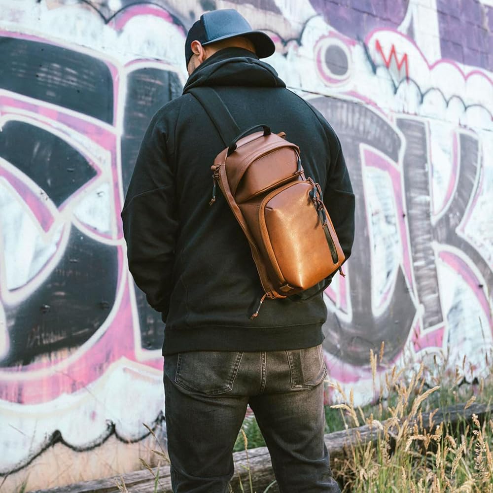 يمكن حملها كل يوم - تتميز حقيبة Upscale3 الجلدية ذات الجسم الطويل بمساحة مبطنة للنظارات الشمسية تحافظ على نظارتك آمنة من الخدوش غير المرغوب فيها؛ يمكن أيضًا استخدام هذا الجيب المزود بسحاب لتخزين الأساسيات الصغيرة التي من المفترض أن تغطي احتياجاتك اليومية بمزيد من الراحة
