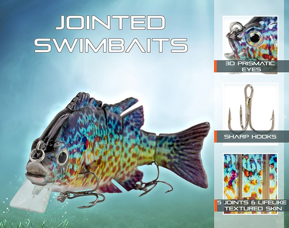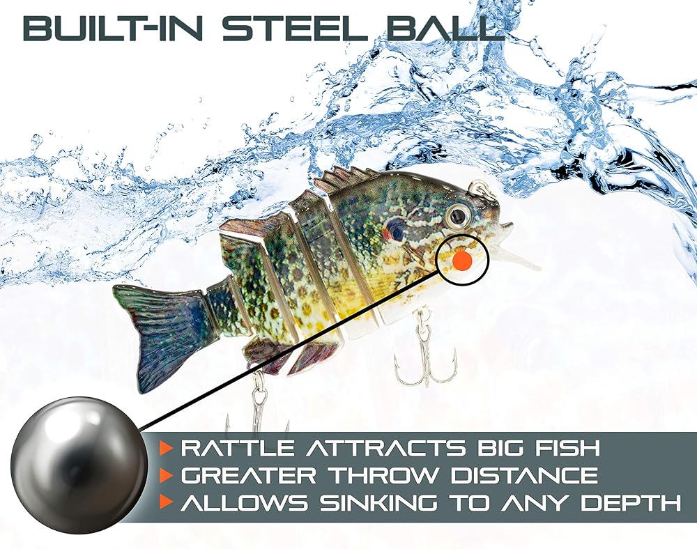 ميزات مثالية - عيون ثلاثية الأبعاد، شكل جسم مثالي من Bluegill (أو Panfish) ولون نابض بالحياة الحقيقي يجعل هذه الطُعم لا تقاوم لجميع أنواع أسماك المياه العذبة (الباس، والبايك، والمسك، وسمك السلور والعديد من أسماك المياه العذبة الأخرى).