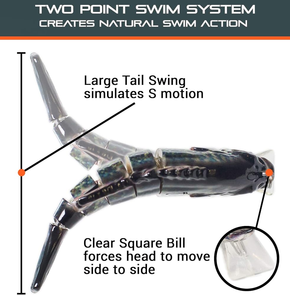إغراء واحد | خمسة أجزاء وفاتورة مربعة - هذا الطُعم عبارة عن طعم سباحة مربع الشكل بخمسة مفاصل وستة أقسام. يسمح الجسم المفصل للطعم بأن يكون لديه حركة سباحة طبيعية مثالية على شكل حرف "S" لجذب أكبر أسماك اللعبة. يتم توصيل أجزاء الجسم الصلبة باستخدام نسيج Dyneema المتين والقوي.