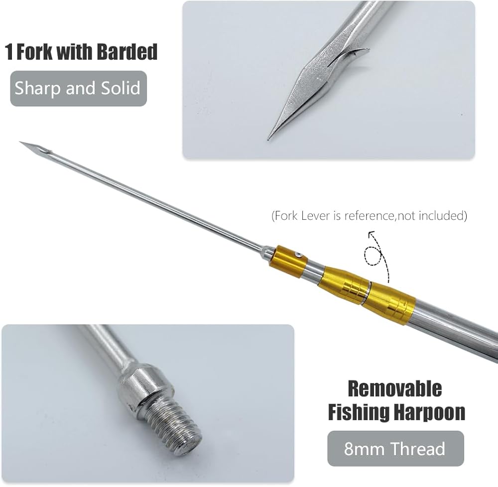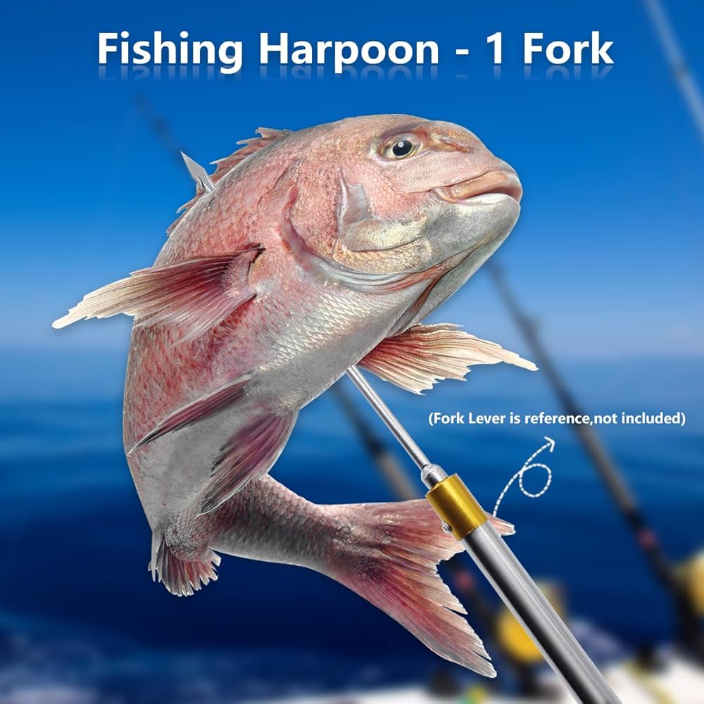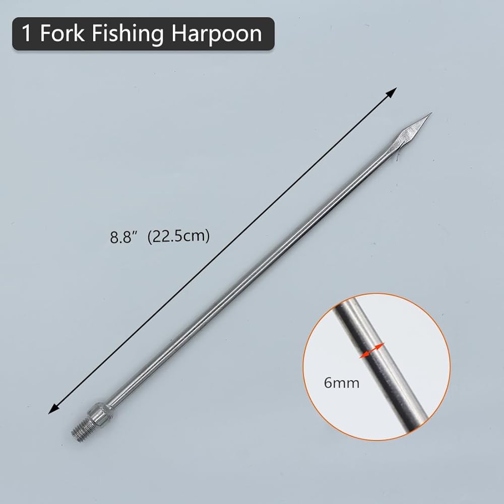 • 【استخدامات متعددة】حربة مصممة بـ 7 شقوق، نقاط مسطحة، حادة للغاية، مثالية لمغامرة الرمح ولن تفقد فريستك الكبيرة. رائعة لصيد الخلد والأسماك الكبيرة والضفدع الكبير والسلمون وثعبان البحر..