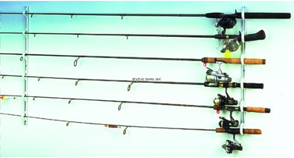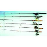 This is one of the easiest and fully adjustable rod storage systems on the market. No more tangled or broken fishing rods stacked in a corner. FEATURES: Fully adjustable, no need to take reels off, stores rods with handles up to 1-3/4" in dia., completely rust resistant, new improved tip holders, mounts horizontal or vertical on the ceiling or wall. Perfect for inside boats, pickup trucks, vans and RV's. 4 ft. aluminum track with white rod holders. Holds up to 12 rods.