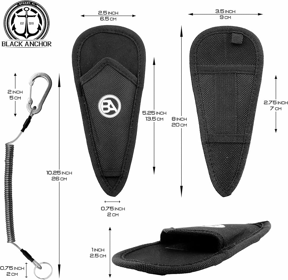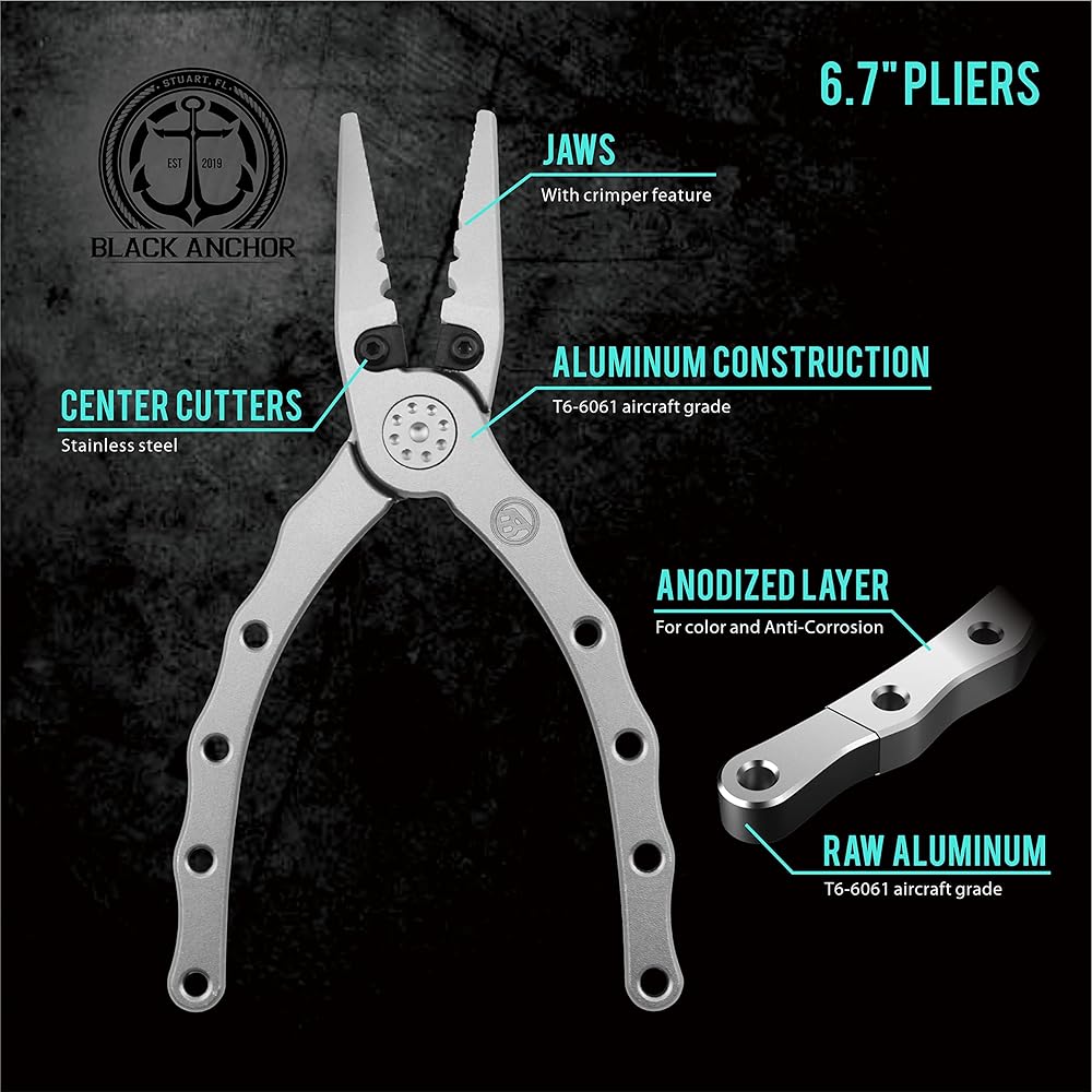 كماشة صيد السمك من الألومنيوم بمرساة سوداء مقاس 6.7 بوصة، مقاومة للمياه المالحة، قاطعات خطوط أحادية وفلورية وجديلة، غمد من النايلون مع حلقة حزام (فضي، 6.70)