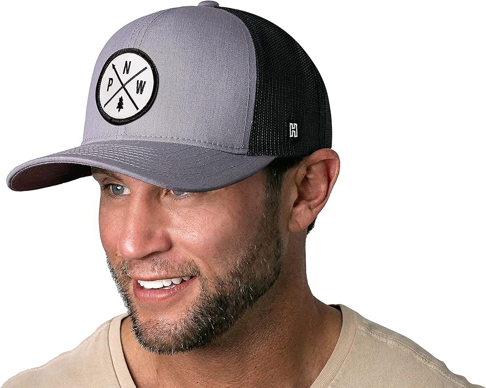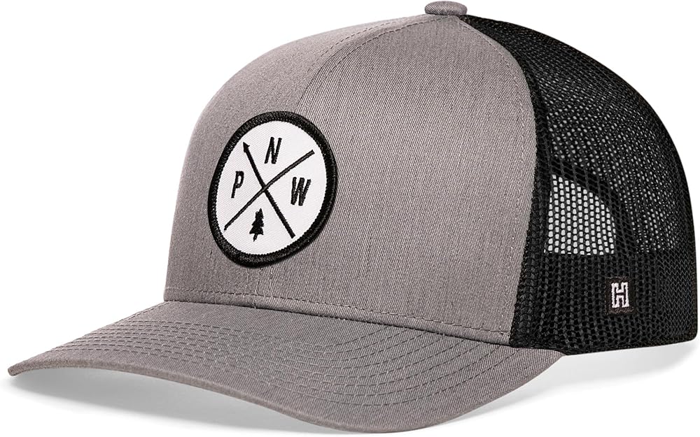 قبعة شاحنة PNW كلاسيكية: تمثل قبعة أب ممتازة، وقبعة جولف، وقبعة قارب، وقبعة للجري، وقبعة للمشي لمسافات طويلة، وقبعة ركوب الأمواج، وقبعة تنس، وقبعة خارجية، وقبعة صيد أو قبعة صيد البط. قبعة شاطئ مثالية أو قبعة صيفية. أفضل قبعة للحماية من الشمس للرجال والنساء. قبعة جميلة إذا كنت تحب قبعة شمال غرب المحيط الهادئ.