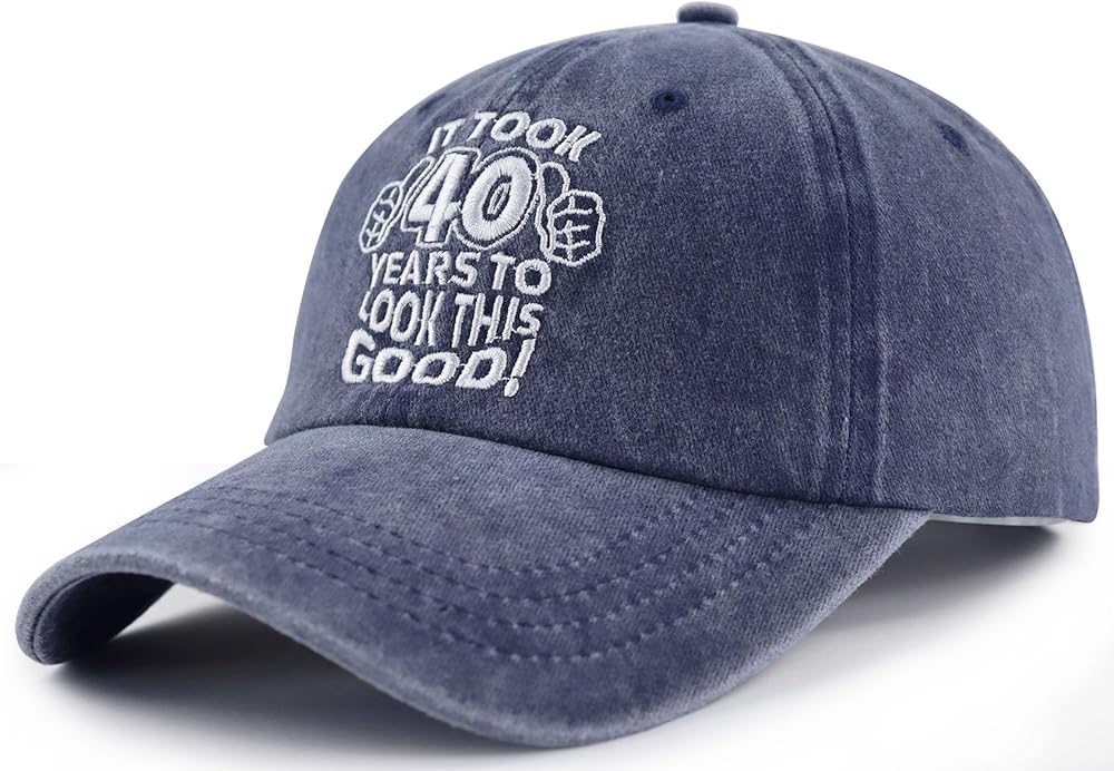 حجم مثالي - مقاس واحد يناسب الجميع. هدايا عيد الميلاد الأربعين للرجال والنساء والأصدقاء، محيط قبعة الأب: 21.65-23.62 بوصة / 55-60 سم. الحافة: 2.75 بوصة/7 سم. الارتفاع: 3.54 بوصة/9 سم. قفل خلفي بإبزيم معدني قابل للتعديل، مناسب لجميع أحجام الرأس.