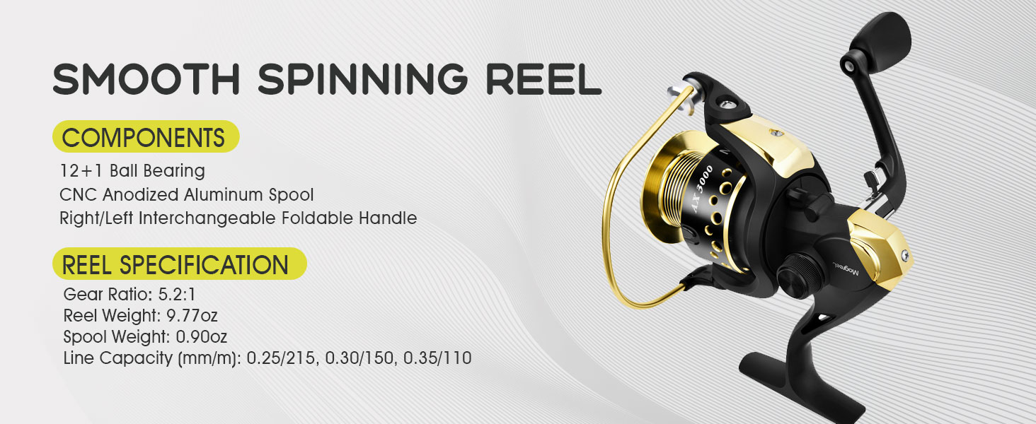 ▶ بكرة فائقة النعومة: بكرة ألومنيوم رائعة بلون مزدوج، مقبض خشبي، مقبض معدني قابل للطي لليد اليمنى/اليسرى القابلة للتبديل. مع أداء فائق السلاسة، فهو رائع للأسماك الكبيرة. نسبة تروس قوية 5.2:1، سعة الخط: (ملم / م) 0.25/215 0.30/150 0.35/110.
