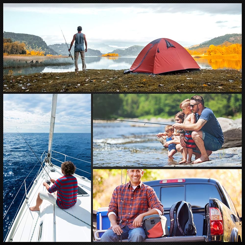 ▶ محمولة للحمل: صنارة صيد دوارة ومجموعات بكرة مع حقيبة حمل من مادة ايفا خفيفة الوزن ومريحة في الحمل، وتناسب بسهولة حقيبة الظهر أو صندوق السيارة أو القارب. استمتع برحلة صيد رائعة في أي وقت!