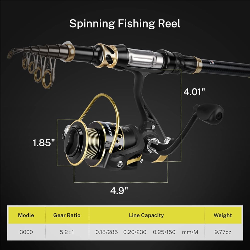 ▶ ملحقات متعددة: تتضمن مجموعة أعمدة الصيد هذه: 1 × صنارة صيد تلسكوبية + 1 × بكرة صيد + 1 × حقيبة حمل من مادة ايفا + 1 × خيط صيد 120 متر + 1 × طُعم وإكسسوارات الصيد.