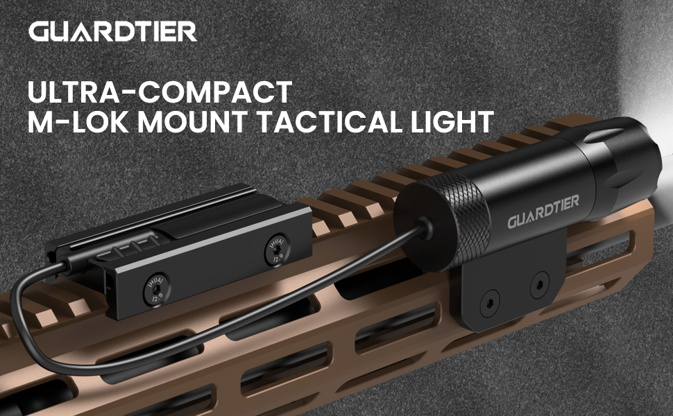 مصباح سلاح Guarditer M104 1200 لومن متوافق مع سكة M-Lok، مصباح يدوي تكتيكي قابل لإعادة الشحن مع مفتاح ضغط ولوحة تثبيت مثبتة على البندقية