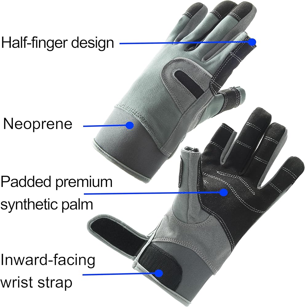 - تعزيز ملفوف سلس على الأصابع لتحسين مقاومة التآكل والقبضة. قماش مطاطي على الظهر لتوفير الراحة مع الأشعة فوق البنفسجية 50+ وحماية مقاومة للماء.