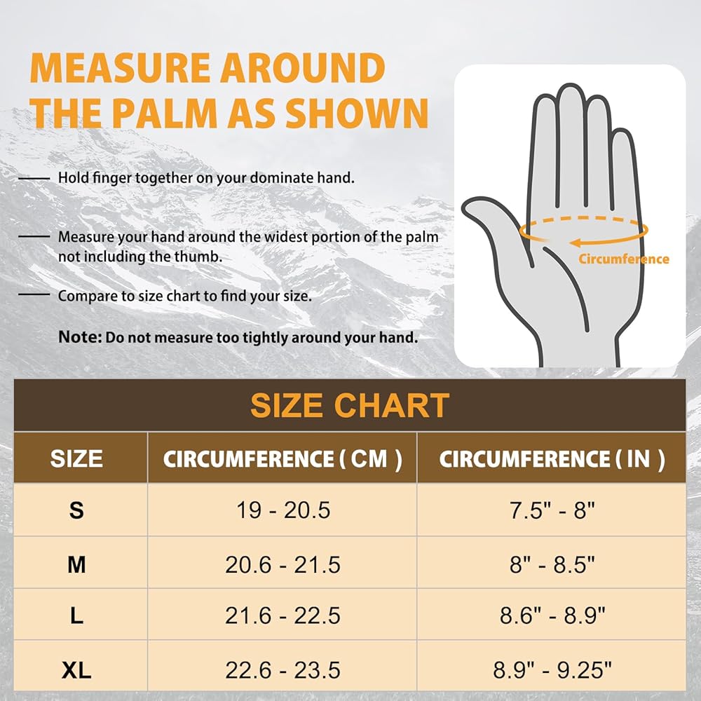 • 【خيارات مقاسات متعددة】اختر المقاس المثالي من بين مجموعتنا من مقاسات قفازات الصيد الشتوية هذه! القياس الدقيق يضمن الراحة والأداء. المقاسات المتوفرة من S إلى XL، مثالية لعشاق الصيد أو المغامرين في الهواء الطلق.