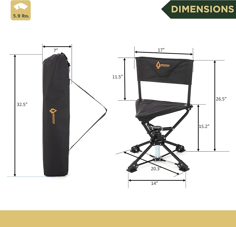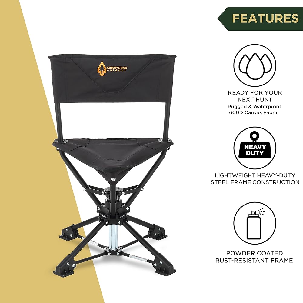 مقعد كرسي صيد دوار 360 درجة من ARROWHEAD خارجي، مثالي للستائر، بدون أقدام بالوعة، يدعم ما يصل إلى 450 رطل، حقيبة حمل، إطار فولاذي، صيد الأسماك، قماش 600D عالي الجودة، دعم قائم على الولايات المتحدة الأمريكية