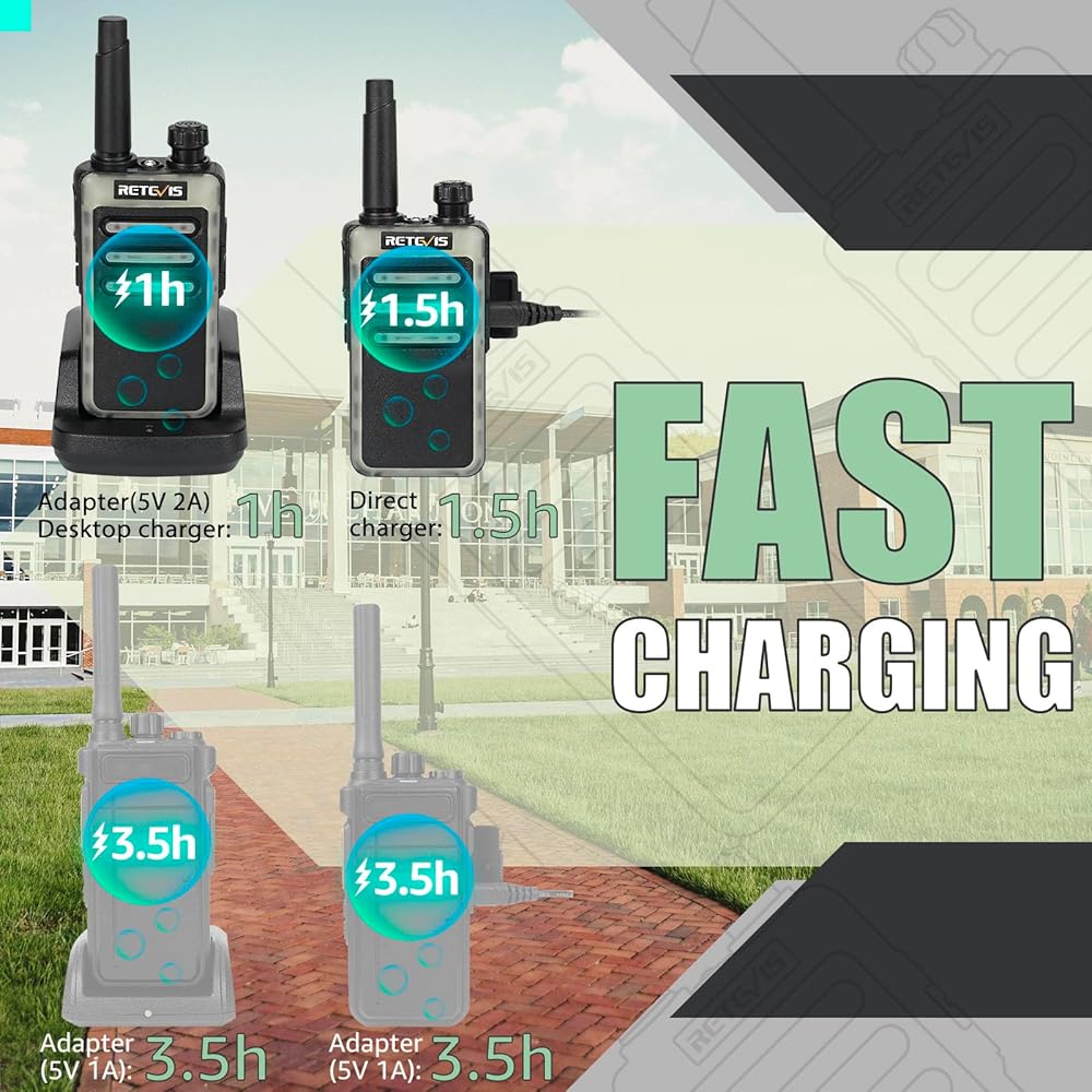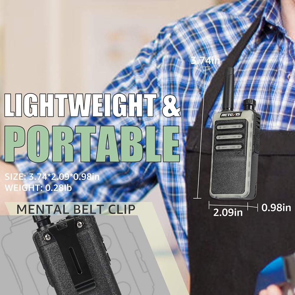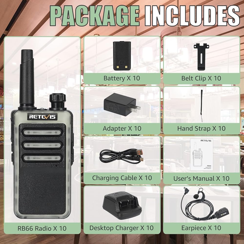 أجهزة راديو Retevis RB66 سريعة الشحن في اتجاهين، راديو محمول ثنائي الاتجاه مع سماعة أذن، منبه عن بعد، قاعدة شحن USB-C، أجهزة اتصال لاسلكية صغيرة للبالغين في مطعم كنيسة المدرسة (10 عبوات)