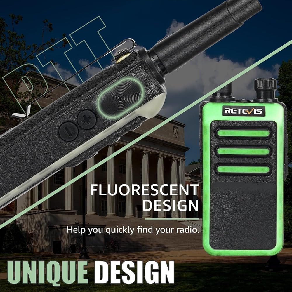 زر PTT كبير؛ سهل التشغيل والاستخدام. يكون زر PTT أكثر راحة عند الضغط عليه للتواصل؛ يعد تصميم المصباح والفلورسنت أكثر ملاءمة للاتصالات الليلية