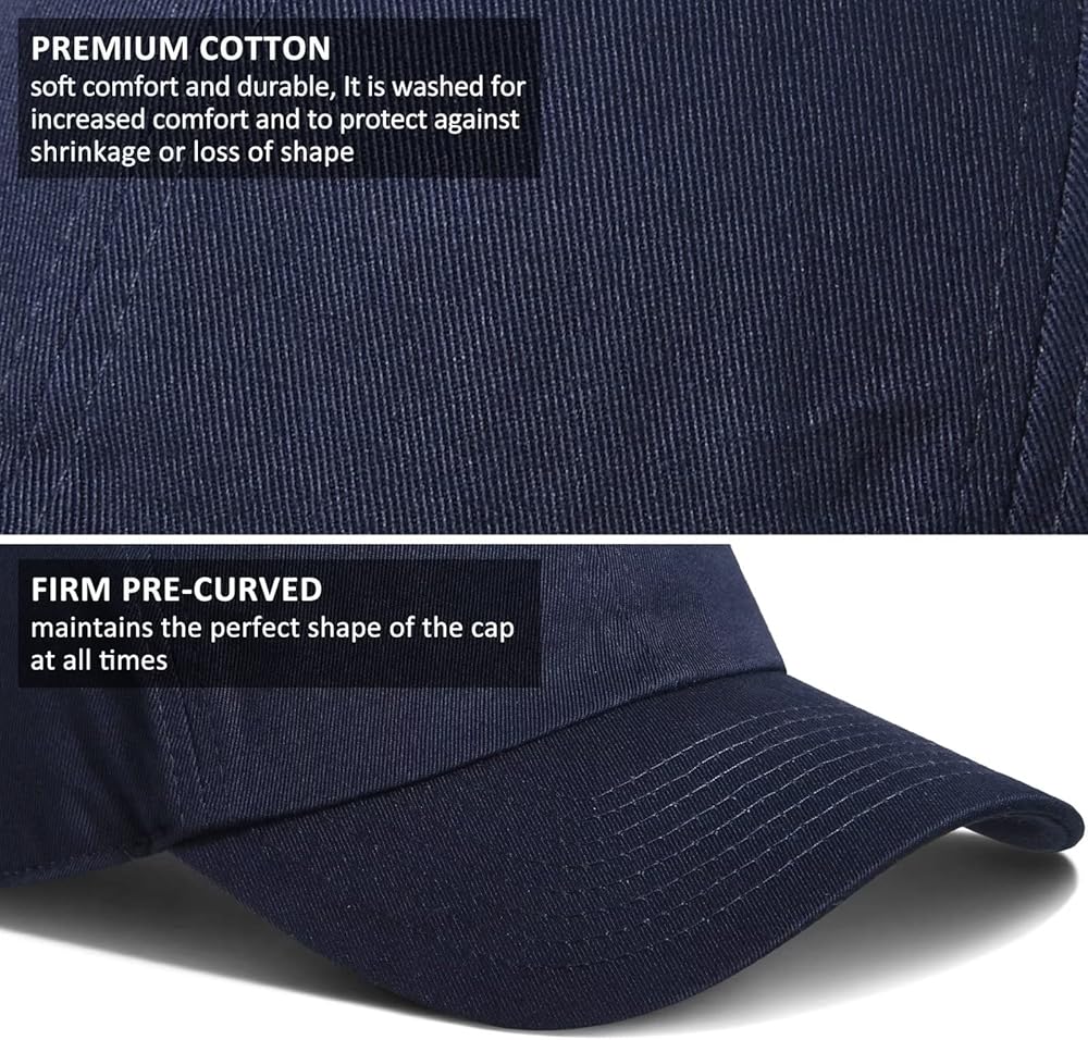 قطن فاخر: القبعة مصنوعة من القطن بنسبة 100% ومغسولة لمزيد من الراحة وللحماية من الانكماش أو فقدان الشكل. أملس، وناعم، ومريح، ومتين، وجيد التهوية، وخفيف الوزن. عندما تشعر بقبعاتنا، فإن الجودة تتحدث عن نفسها