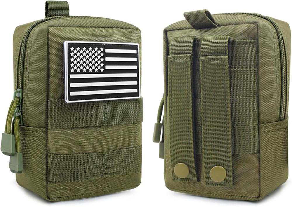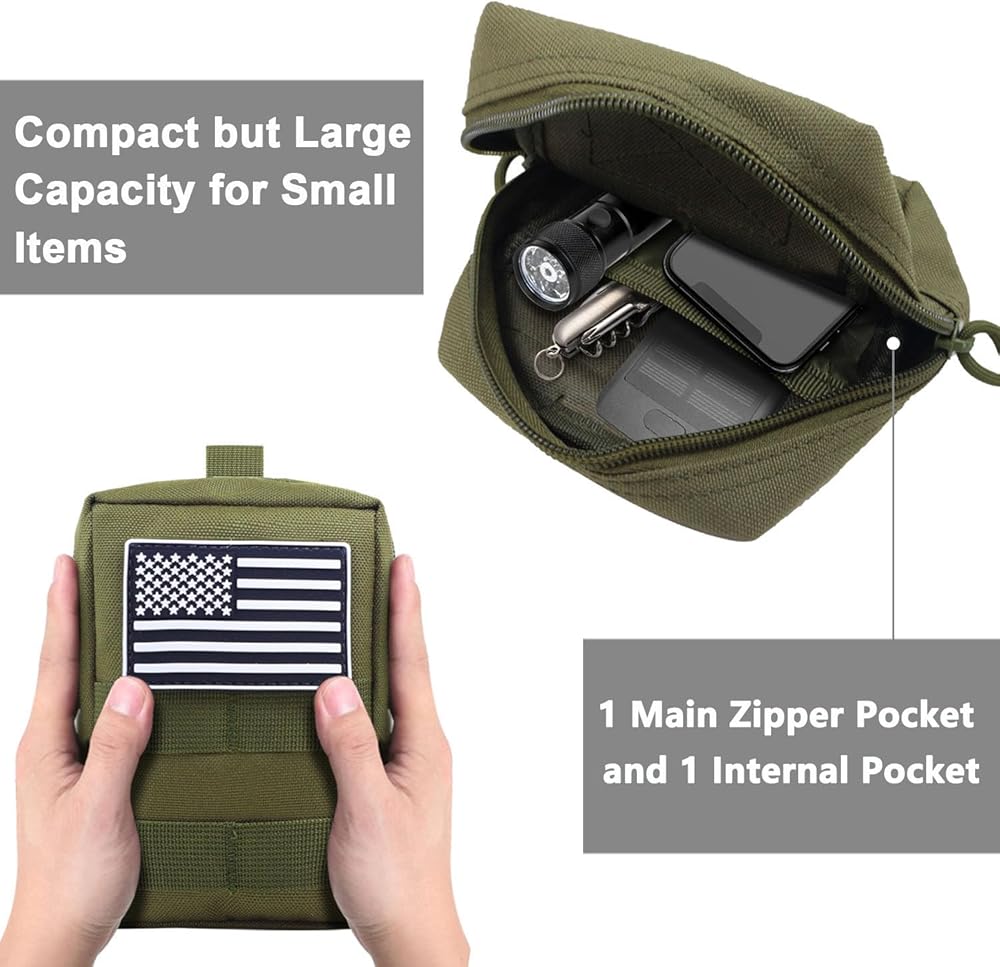 ✅【حقيبة مولي تكتيكية】حقيبتان تكتيكيتان ورقعتي علم. حجم الحقيبة الرخوة: 6.1 × 4.5 × 2.2 بوصة. تحتوي حقيبة مولي على حجرة رئيسية واحدة وجيب داخلي واحد، مثالية للتخييم أو المشي لمسافات طويلة أو الاستخدامات اليومية لتخزين الهاتف الخلوي وسلسلة المفاتيح والمصباح اليدوي وجهاز تحديد المواقع ومجموعة الإسعافات الأولية والأدوات الصغيرة وكل ما تحتاجه لسهولة الوصول.