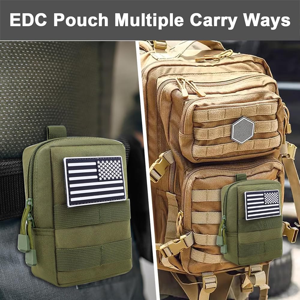 ✅【متين من نسيج نايلون 1000D】مصنوع من نسيج نايلون 1000D وخياطة مزدوجة، مادة من الدرجة العسكرية تعزز إلى حد كبير متانة الاستخدام اليومي ضد التمزق. تتميز حقيبة edc بطبقة مقاومة للماء لمنع أغراضك من البلل في بيئة رطبة.