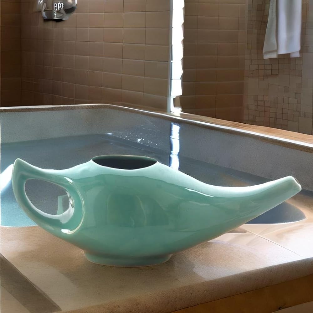 كيفية الاستخدام: لاستخدام وعاء نيتي، املأ ثلاثة أرباعه بالماء الفاتر وأضف ربع ملعقة صغيرة من الملح غير المعالج باليود. اتكئ على الحوض مع إمالة رأسك ووضع طرف الوعاء على فتحة أنف واحدة. دع المحلول يتدفق حتى يخرج من فتحة الأنف الأخرى، ثم كرر ذلك في الجانب الآخر. بعد ذلك، قم بنفخ أنفك بلطف دون استخدام أصابعك. نظف الوعاء بالصابون والماء الساخن، ثم جففه بالهواء قبل تخزينه. تذكر أن تتجنب مشاركة وعاء neti لمنع العدوى المحتملة.