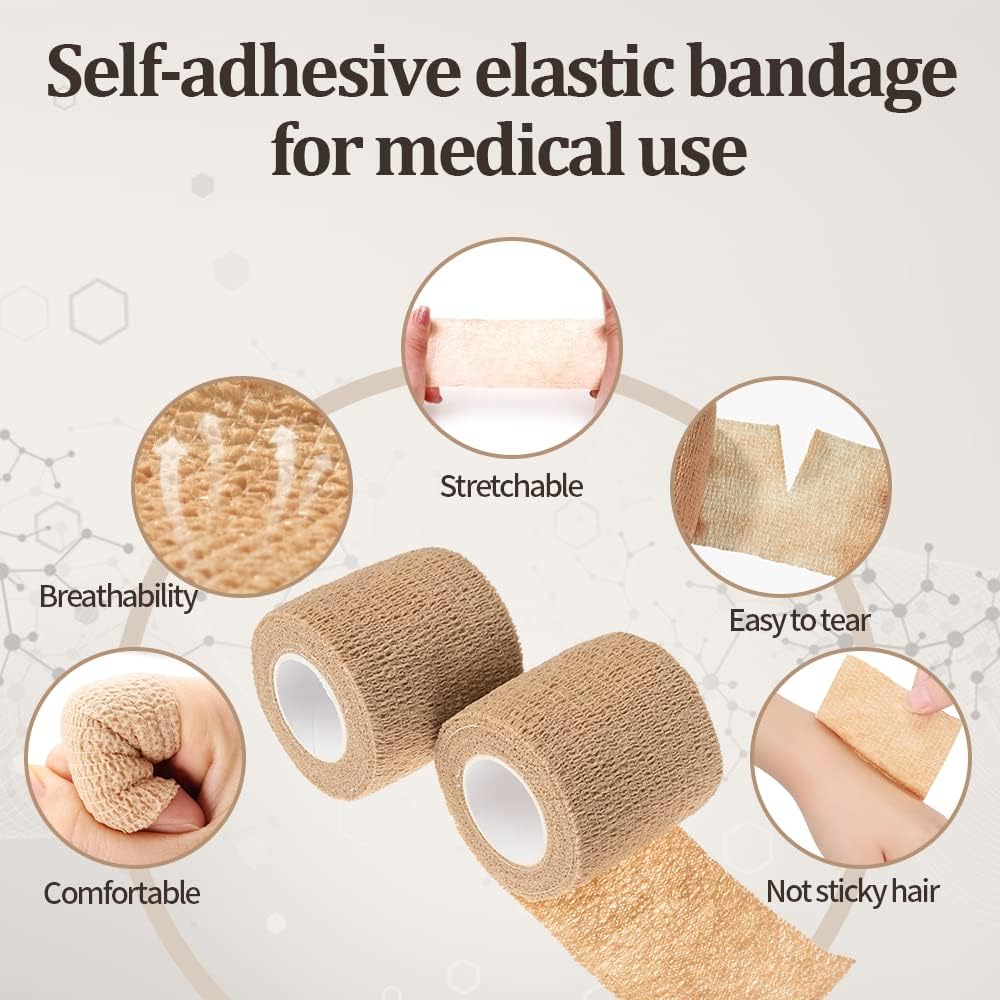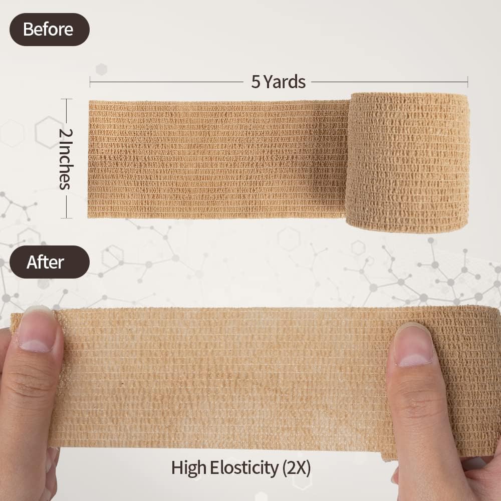تشتمل العبوة على: ضمادات ذاتية اللصق لكل عبوة مكونة من 12 لفة، بعرض 2 بوصة وطول 5 ياردات، كل لفة معبأة بشكل فردي، وسهلة الحمل، وآمنة وصحية، وهي قطعة يجب وضعها في مجموعة الإسعافات الأولية الخاصة بك .