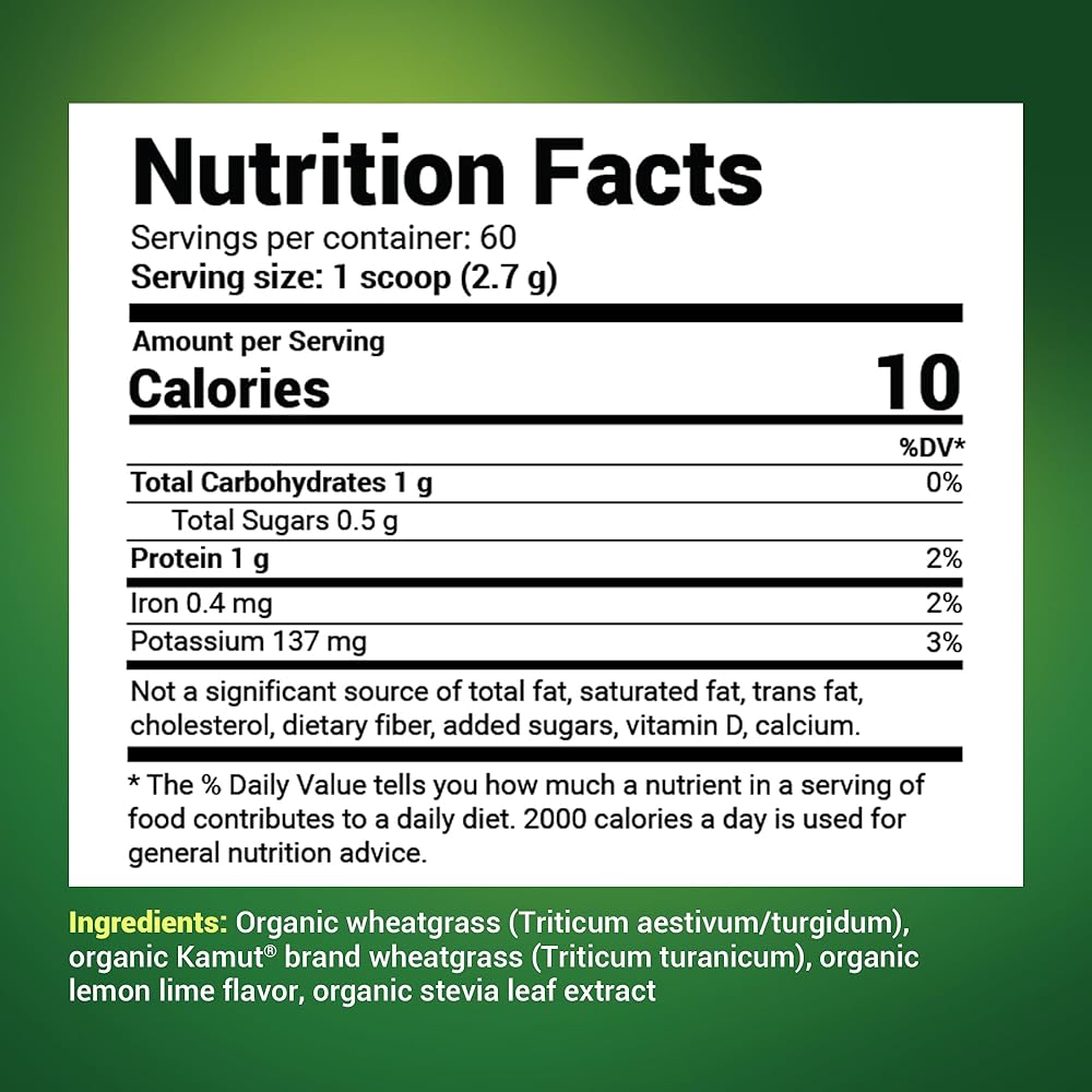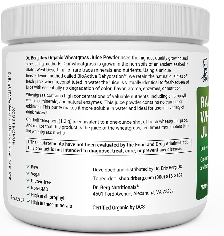 مسحوق الغذاء الفائق من عشبة القمح من دكتور بيرج - عصير خام عضوي فائق التركيز غني بالفيتامينات والمغذيات - الكلوروفيل والمعادن النادرة - 60 حصة - خالي من الغلوتين وغير معدل وراثيًا - 5.3 أونصة (3 عبوات) 𝗧 𝗚𝗥𝗔𝗦𝗦 𝗣𝗢𝗪𝗗𝗘𝗥 - نمت قديمًا قاع البحر في الصحراء الغربية بولاية يوتا، مع امتصاص معزز للمعادن النزرة باستخدام طريقة فريدة من نوعها للتجفيف بالتجميد تسمى الجفاف الحيوي. 𝟭𝟬𝟬% 𝗢𝗥𝗚𝗔𝗡𝗜𝗖 𝗝𝗨𝗜𝗖𝗘 - العصير مطابق تقريبًا للعصير الطازج دون أي تدهور في اللون والنكهة والرائحة والإنزيمات والتغذية. 𝗔𝗠𝗔𝗭𝗜𝗡𝗚 𝗡𝗨𝗧𝗥𝗜𝗘𝗡𝗧𝗦 𝗜𝗡 𝗢𝗡𝗘 𝗧𝗘𝗔𝗦𝗣𝗢𝗢𝗡 - ملعقة صغيرة من مسحوق عصير عشبة القمح الخام يعادل تقريبًا 6-10 طلقات من عصير عشبة القمح أو صينية واحدة (10 بوصة × 20 بوصة) من عشبة القمح. - يساعد مسحوق عشبة القمح العضوي على التخلص من الجذور غير المرغوب فيها في جسمك، ويدعم وظائف الهضم والامتصاص، ويوفر الانزيمات. 𝗖𝗢𝗠𝗠𝗜𝗧𝗧𝗘𝗗 𝗧𝗢 𝗦𝗔𝗧𝗜𝗦𝗙𝗔𝗖𝗧𝗜𝗢𝗡 - إذا لم تكن راضيًا لأي سبب من الأسباب عن النتائج التي واجهتها خلال الثلاثين يومًا الأولى، يسعدنا أن نقدم لك لك استرداد! ببساطة أرسل لنا رسالة. ستتم معالجة استرداد الأموال طالما تم طلبها خلال 30 يومًا من تاريخ الشراء. ليست هناك حاجة لإعادة المنتج إلينا!