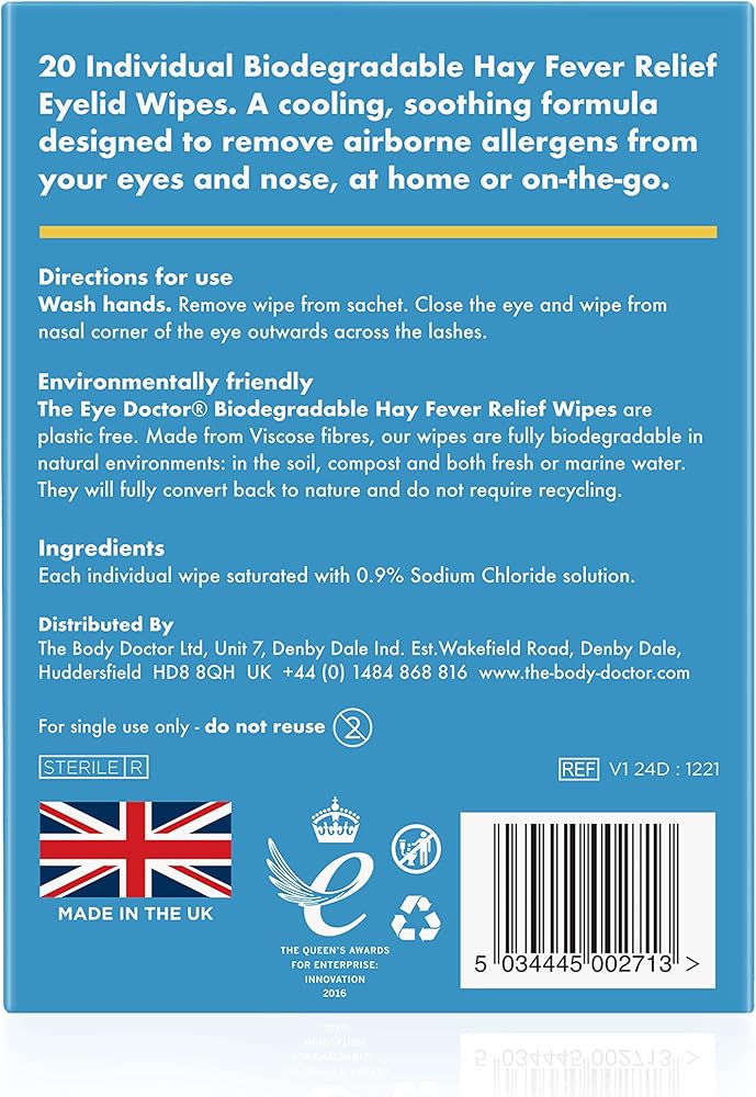 مناديل مبللة للجفون لتخفيف حمى القش من ذا آي دكتور - 20x مناديل مبللة للعين تستخدم مرة واحدة للحساسية وحمى القش - الالتهاب والحكة المائية في العيون والصداع والصداع النصفي - تخفيف مهدئ ومهدئ