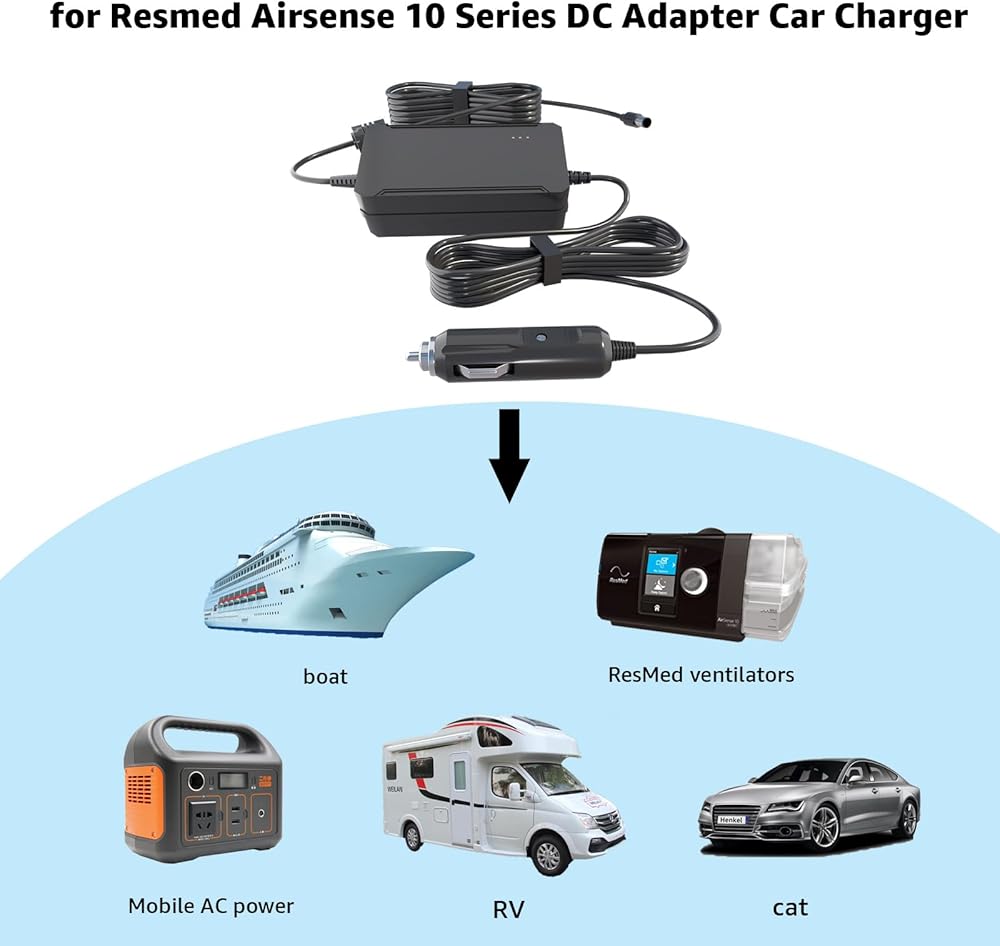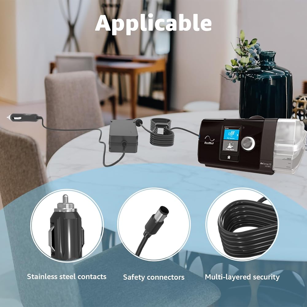 لشاحن سيارة محول تيار مستمر من سلسلة Resmed Airsense 10، وجهاز AirCurve 10 Series CPAP وBiPAP، 370001 37207 37297 Rockpals 300W/500W شاحن كابل سلك إمداد طاقة السيارة